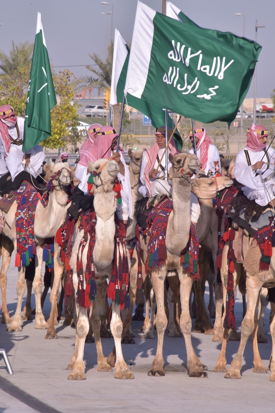 وشاهد الزوَّار أغلى عشرين نوعًا من الإبل في العالم ترافقها مسيرة 25 من الهجّانة المرددين لـ ”الهوبال“ و”الهجيني“ بأشعار المؤسسين الأوائل.
