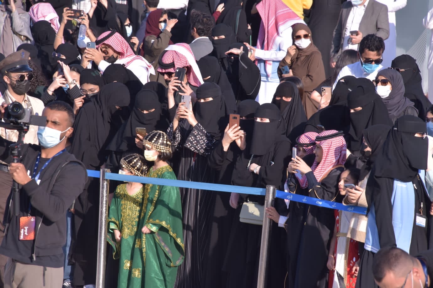 ورفرفت مع ”الهجّانة“ أعلام الدولة السعودية الأولى حتى الدولة السعودية الثالثة مع أصوات من الموروث وقصائد حماسية، ووقفت منقية ”الهايلات“ أمام الجمهور الملتف حولها بما يشبه حركة انتصار الحروب الأولى.