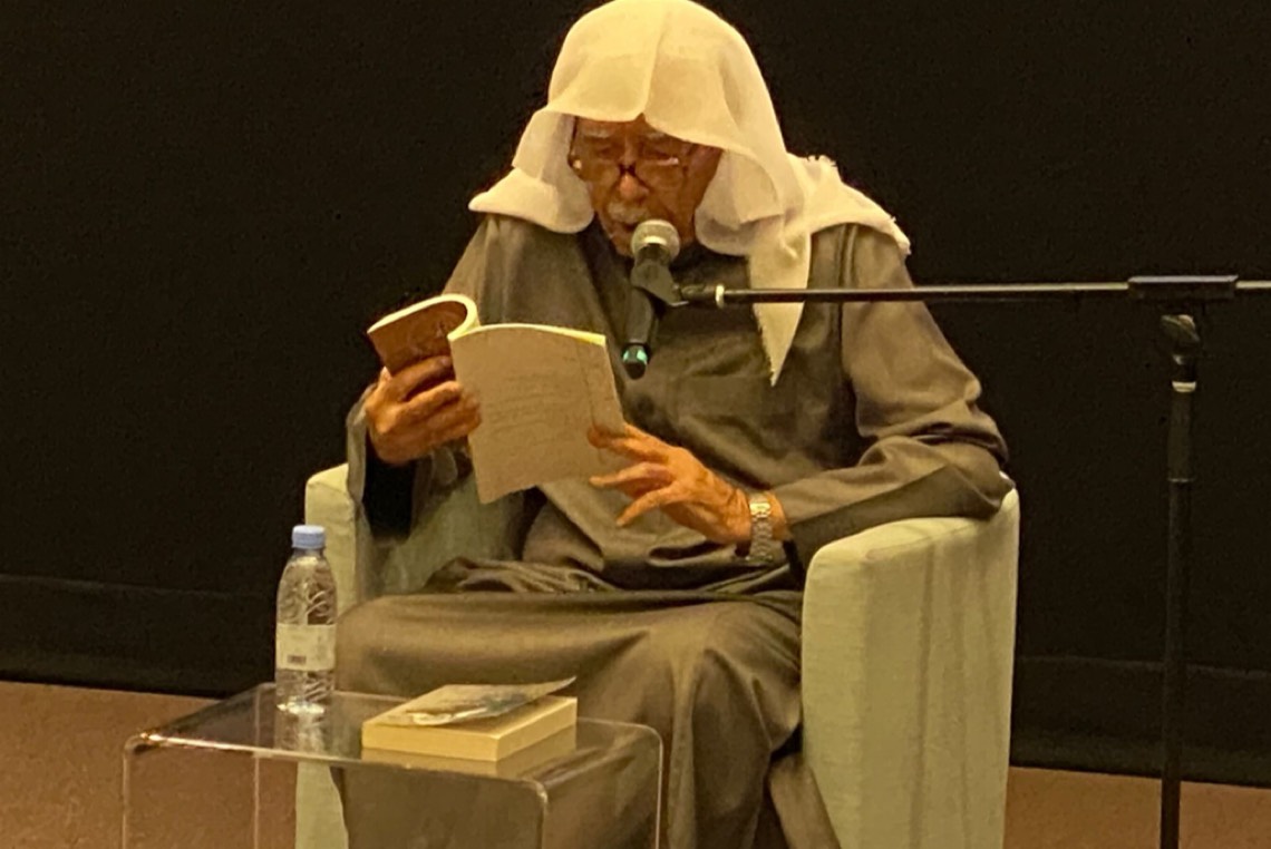 تلاه الشاعر عبدالله الصيخان، الذي ثمّن هذه المبادرة التي أعادته إلى رحاب الأمسيات الشعرية، ثم هدر شعرًاعذبًا من ذاكرته، استحضر فيه الرموز الشعبية ضمن غزلياته ووجدانياته، وختمها بمقاطع من ديوانه ”هواجس فيطقس الوطن“.