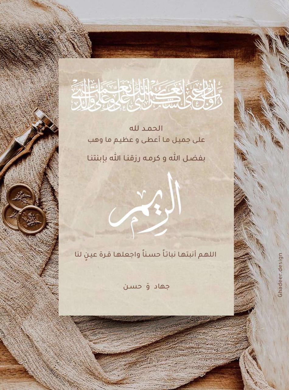 رُزق الشاب حسن علي الزاهر بمولودة اتفق وحرمه جهاد مكي المعيوف على تسميتها «الريم».
