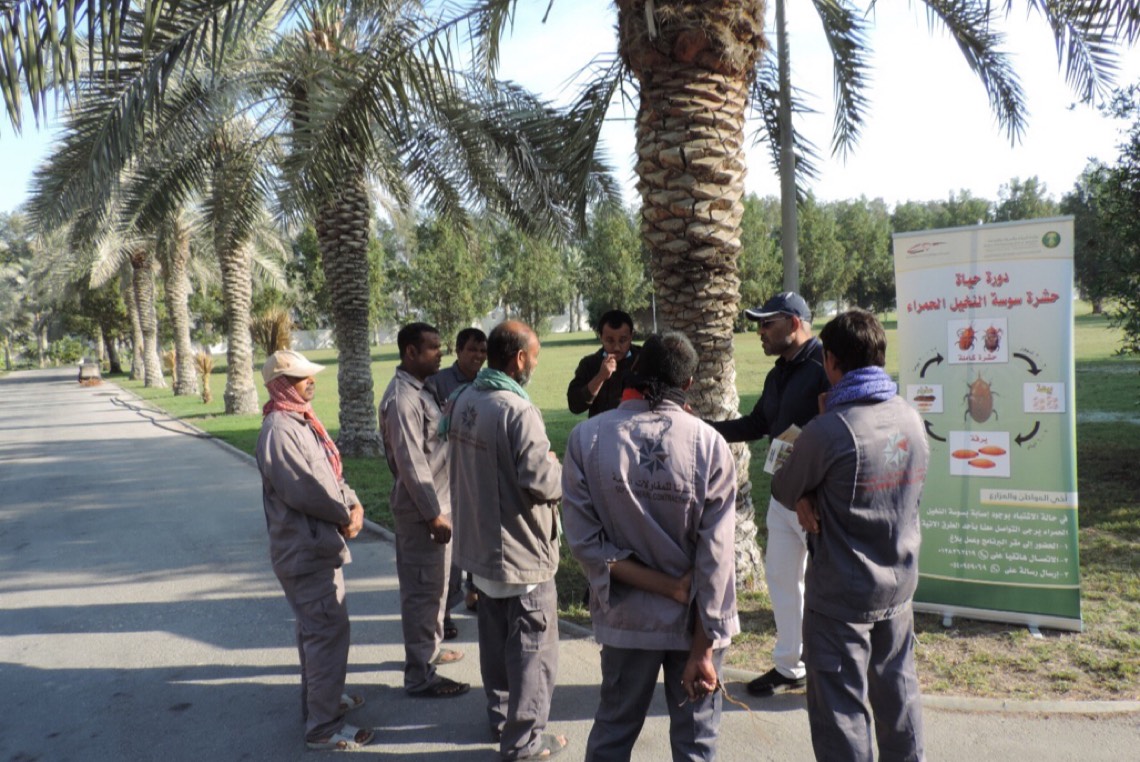 أقام فرع وزارة البيئة والمياه والزراعة بالمنطقة الشرقية، ممثلاً ببرنامج مكافحة سوسة النخيل الحمراء بمحافظة القطيف، عدة ورش تدريبية ميدانية للمزارعين، خلال الشهر الماضي؛ لتعريفهم بالطرق السليمة لفحص وعلاج النخيل المصابة بحشرة سوسة النخيل الحمراء.