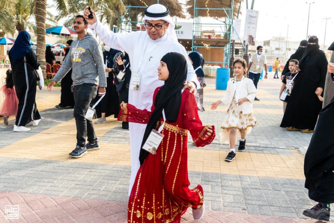 ”زين المشعل“.. أصغر متطوعة وراوية في ملتقى البراحة بالقطيف