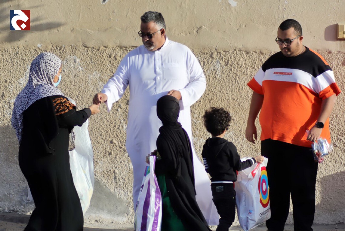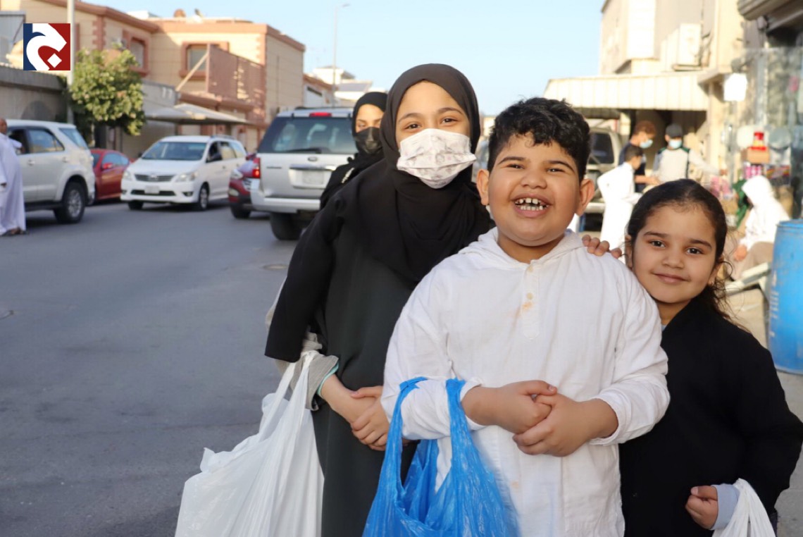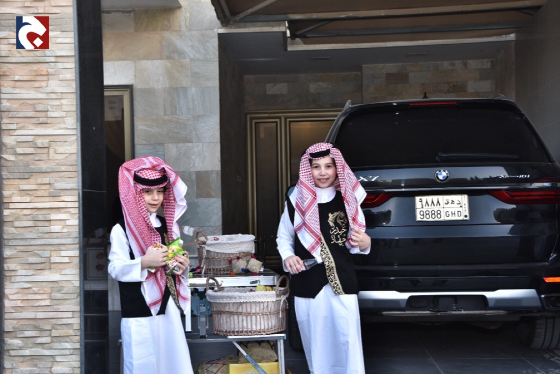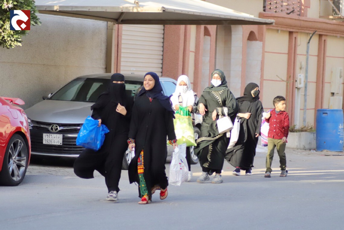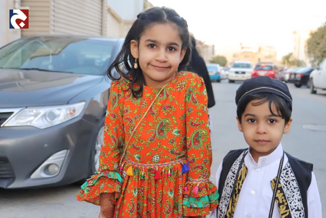 ورصدت ”جهينة الاخبارية“ حشود المحتفلين الذين غلب عليهم النساء والأطفال في أجمل حللهم وهم يتنقلون بين المنازل يتلقون الهدايا والحلويات.
