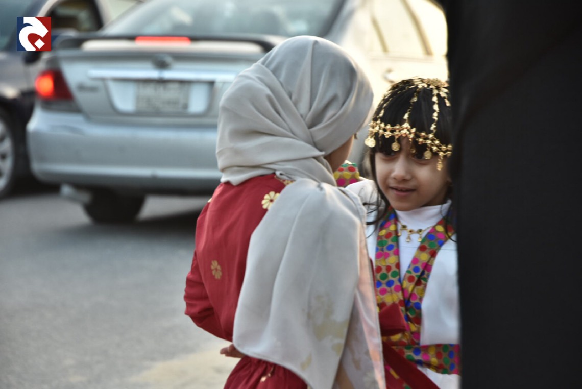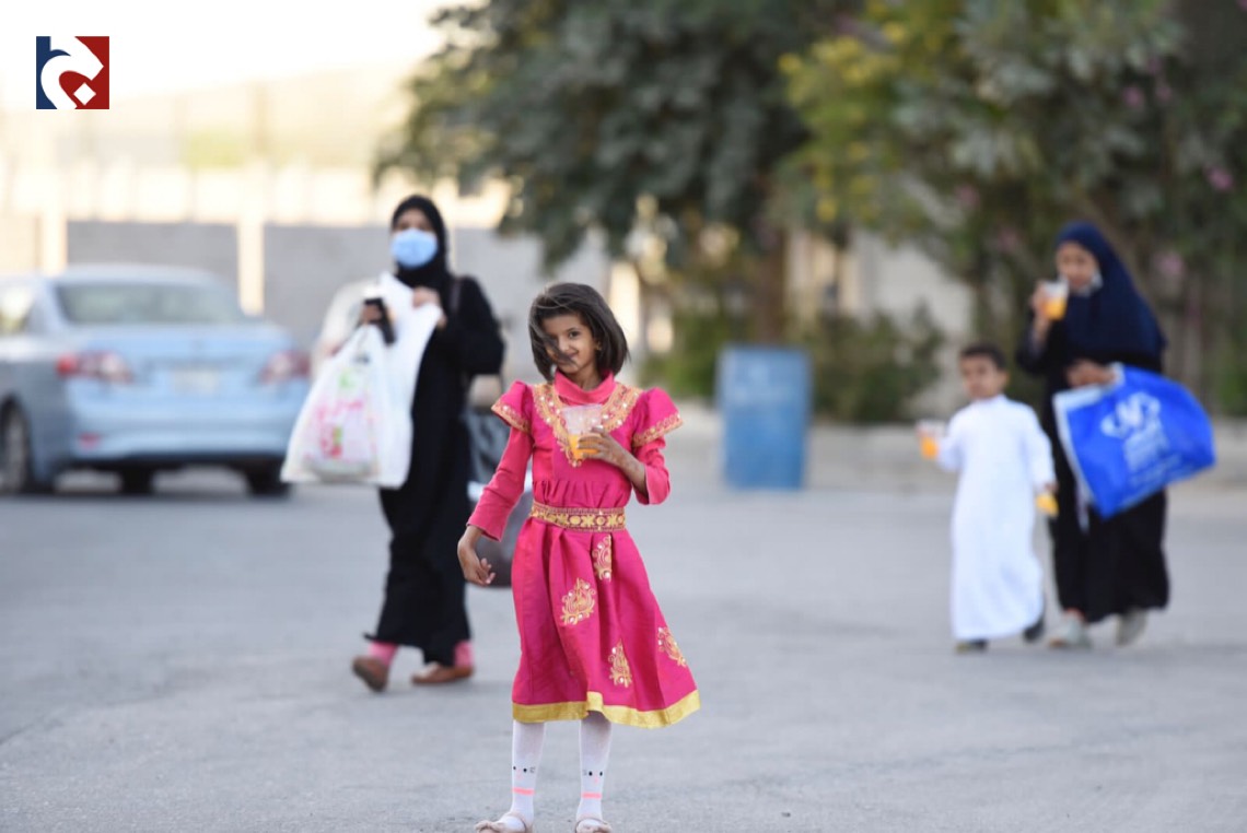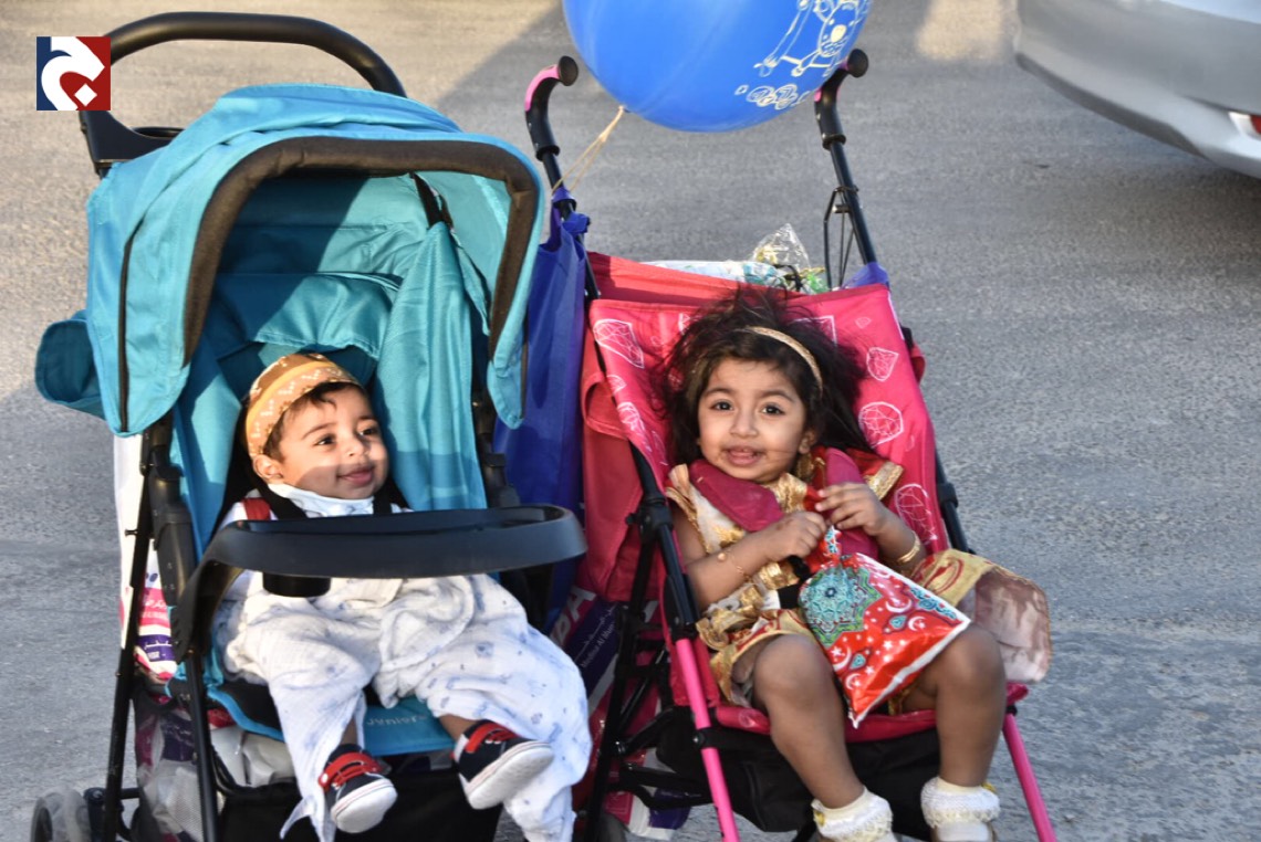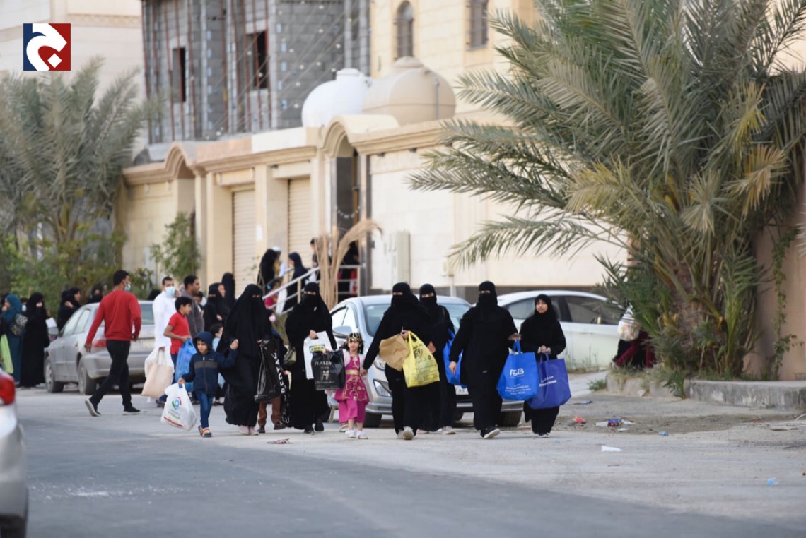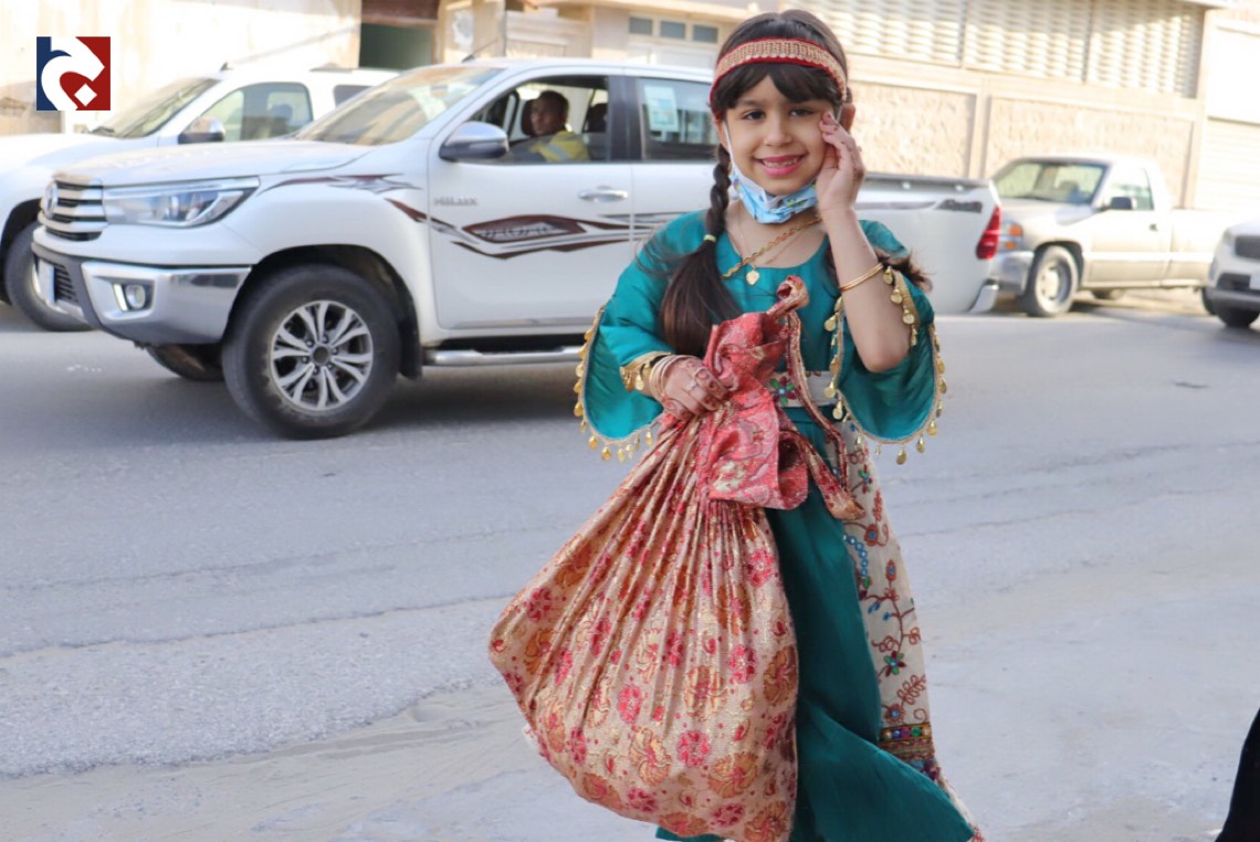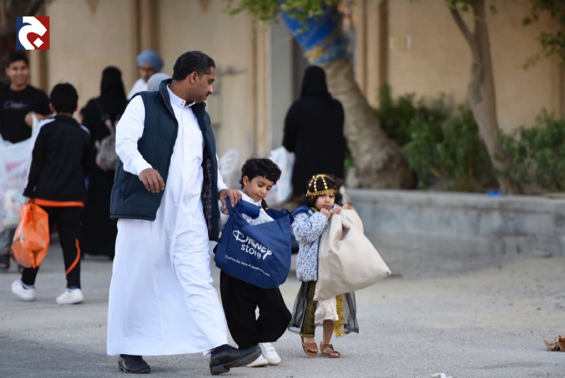 ورصدت ”جهينة الاخبارية“ حشود المحتفلين الذين غلب عليهم النساء والأطفال في أجمل حللهم وهم يتنقلون بين المنازل يتلقون الهدايا والحلويات.