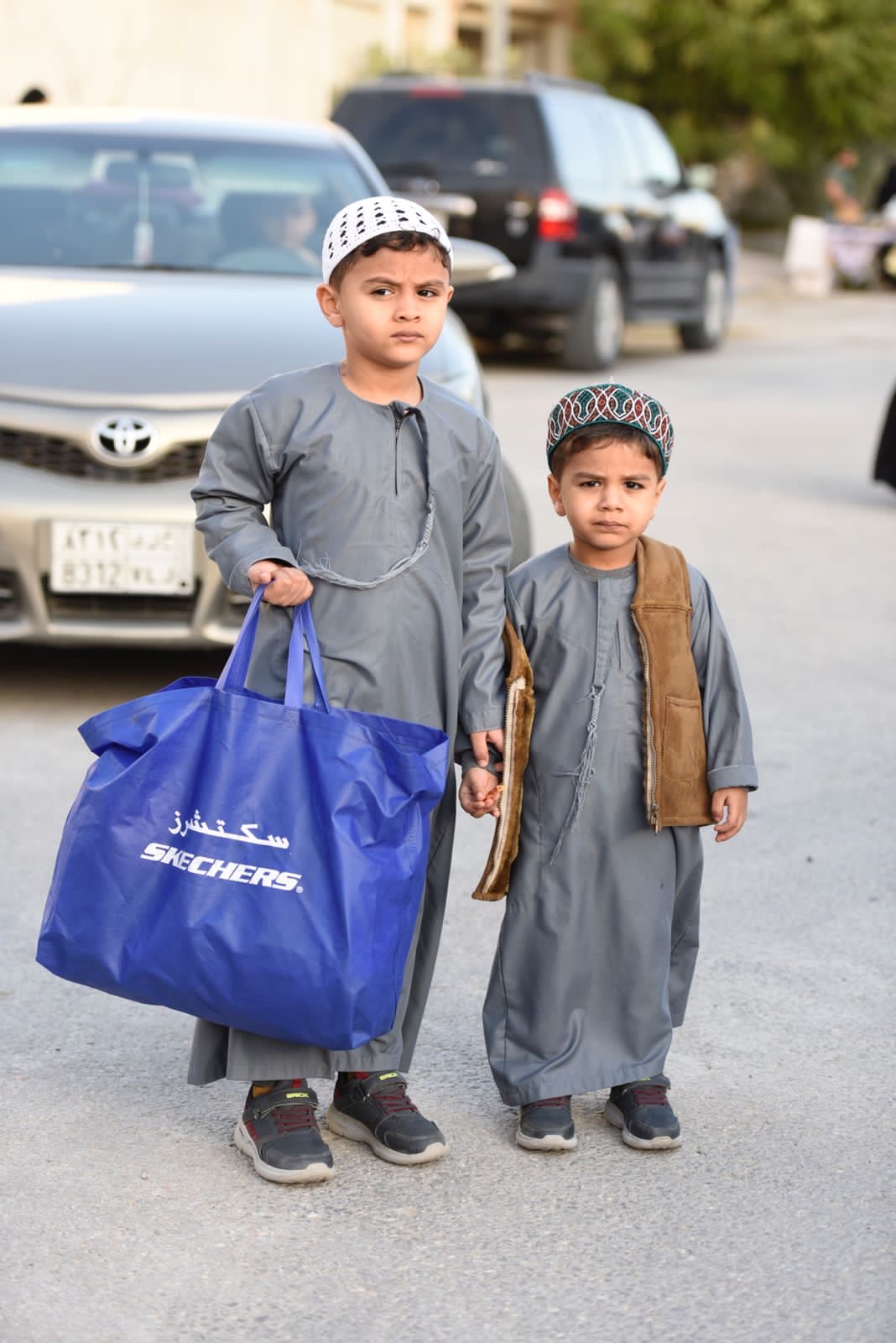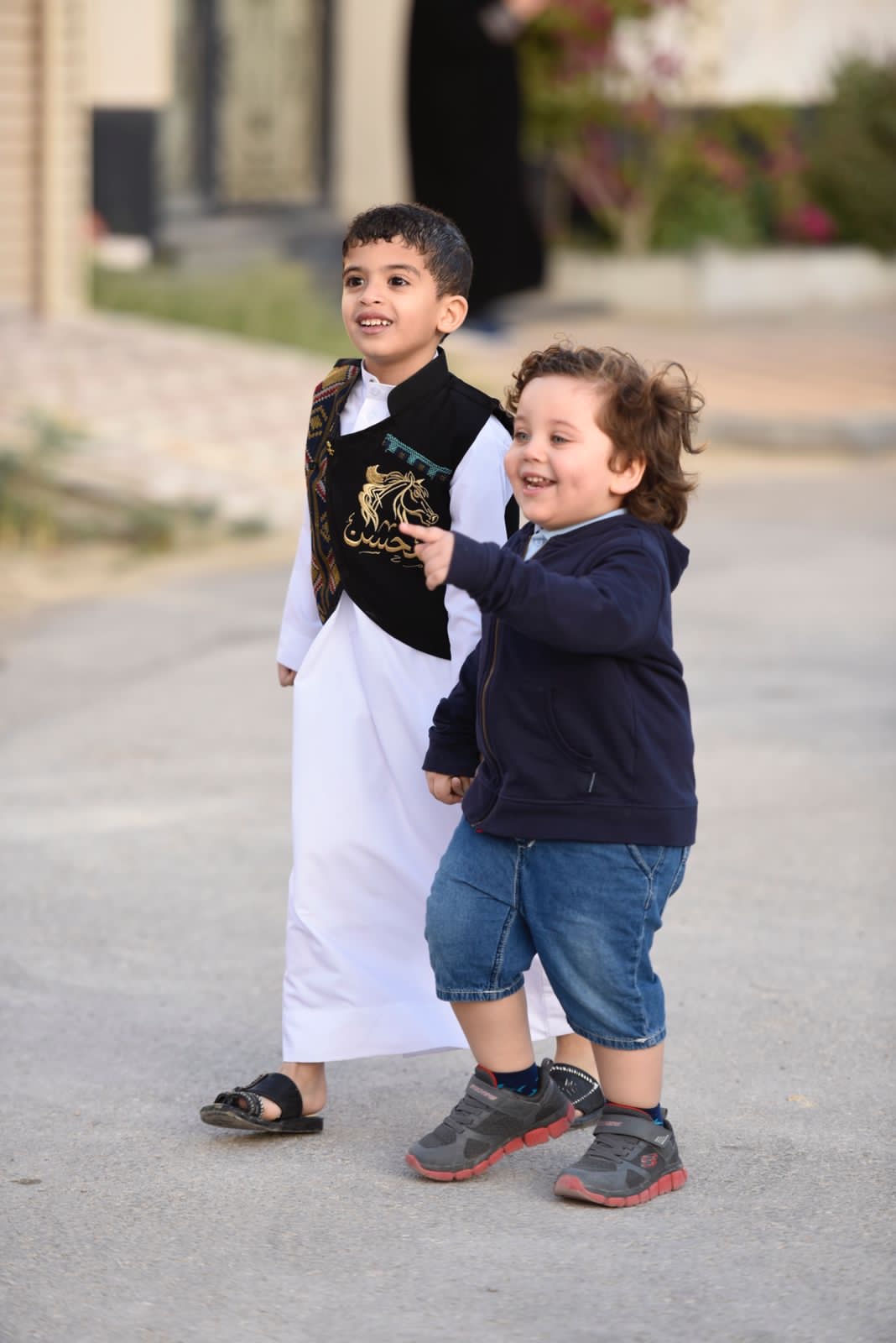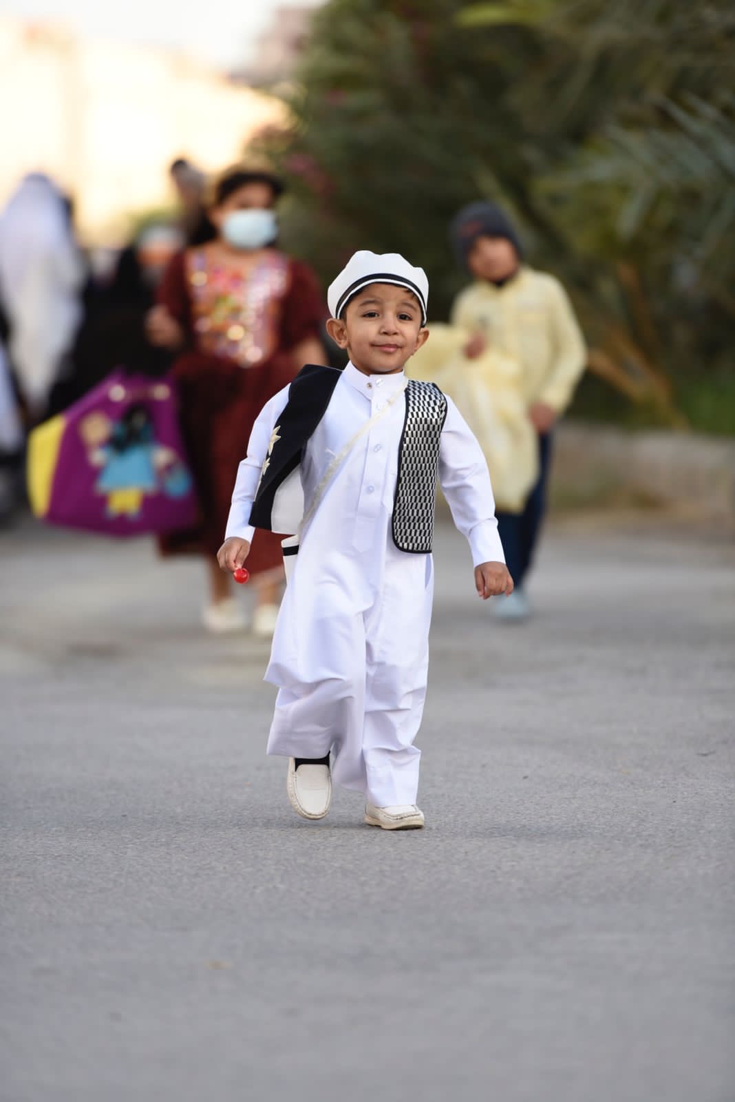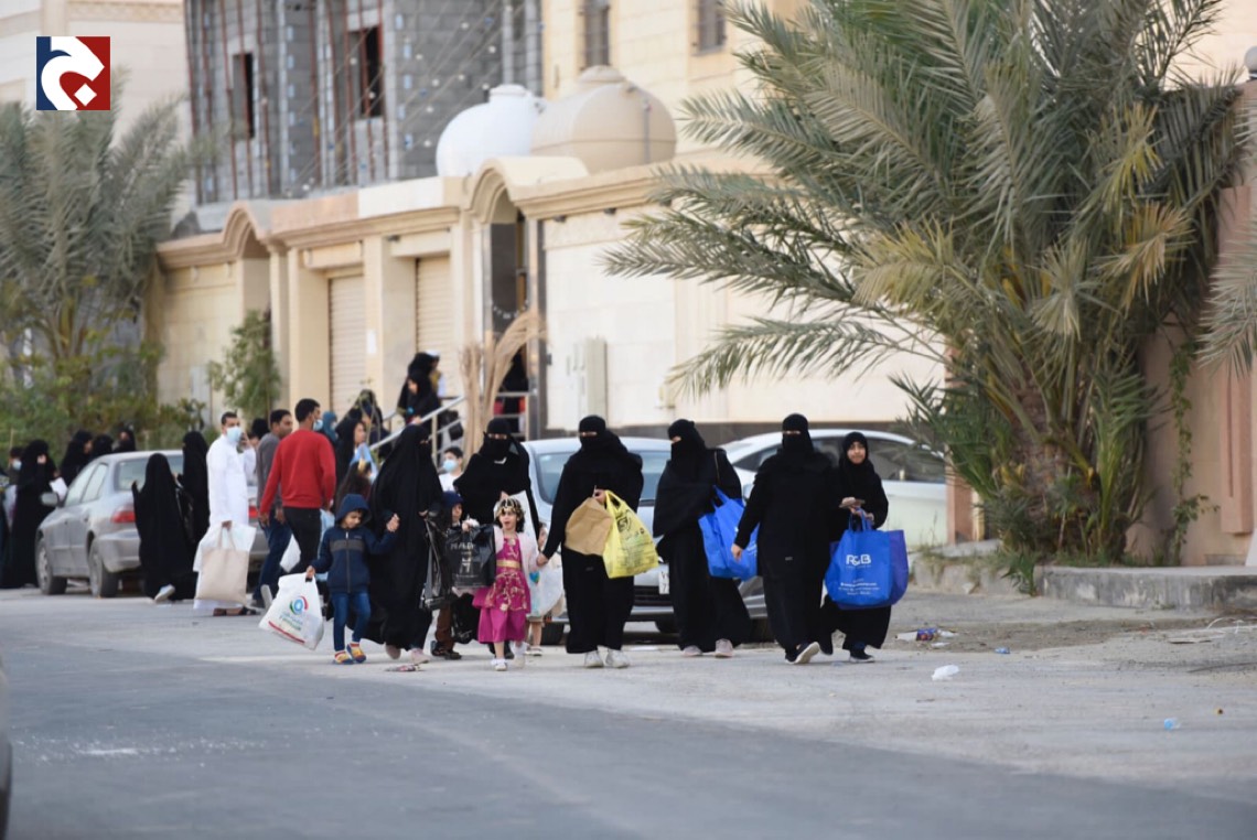 ورصدت ”جهينة الاخبارية“ حشود المحتفلين الذين غلب عليهم النساء والأطفال في أجمل حللهم وهم يتنقلون بين المنازل يتلقون الهدايا والحلويات.