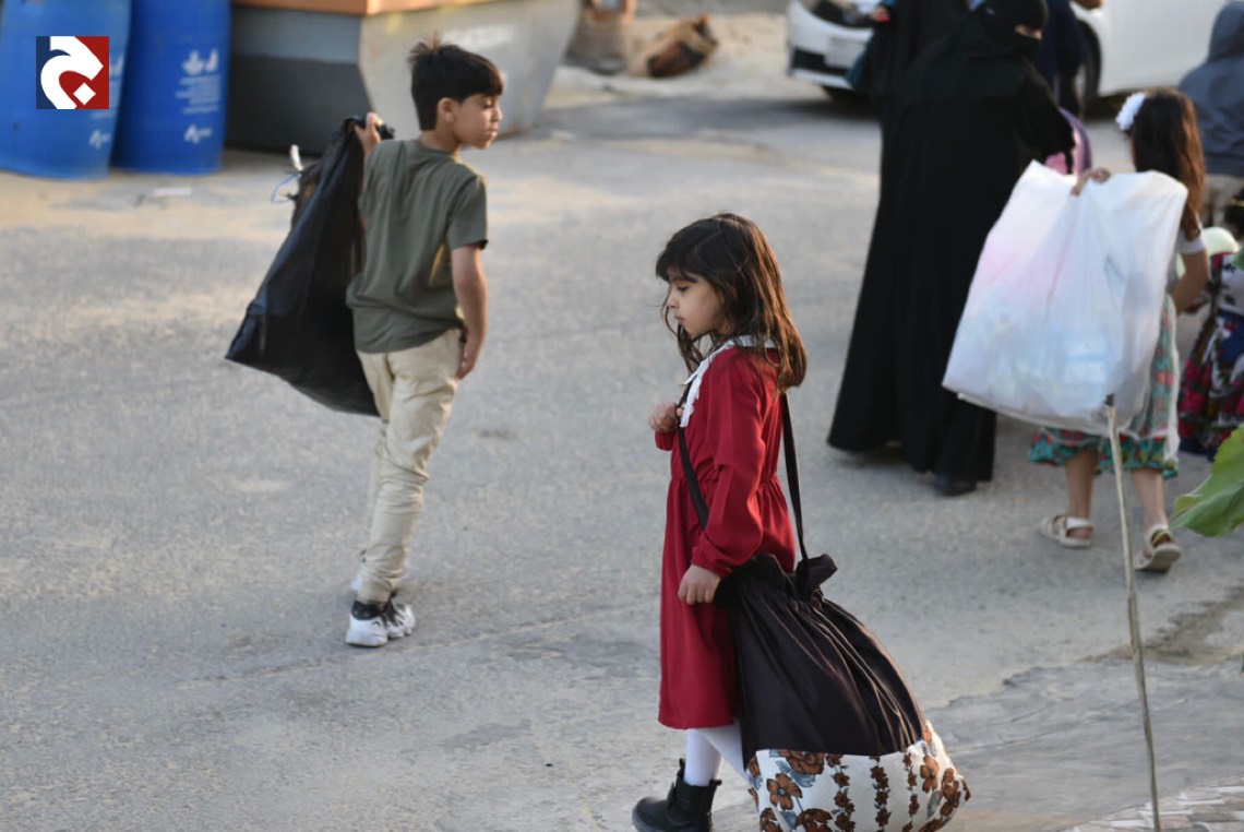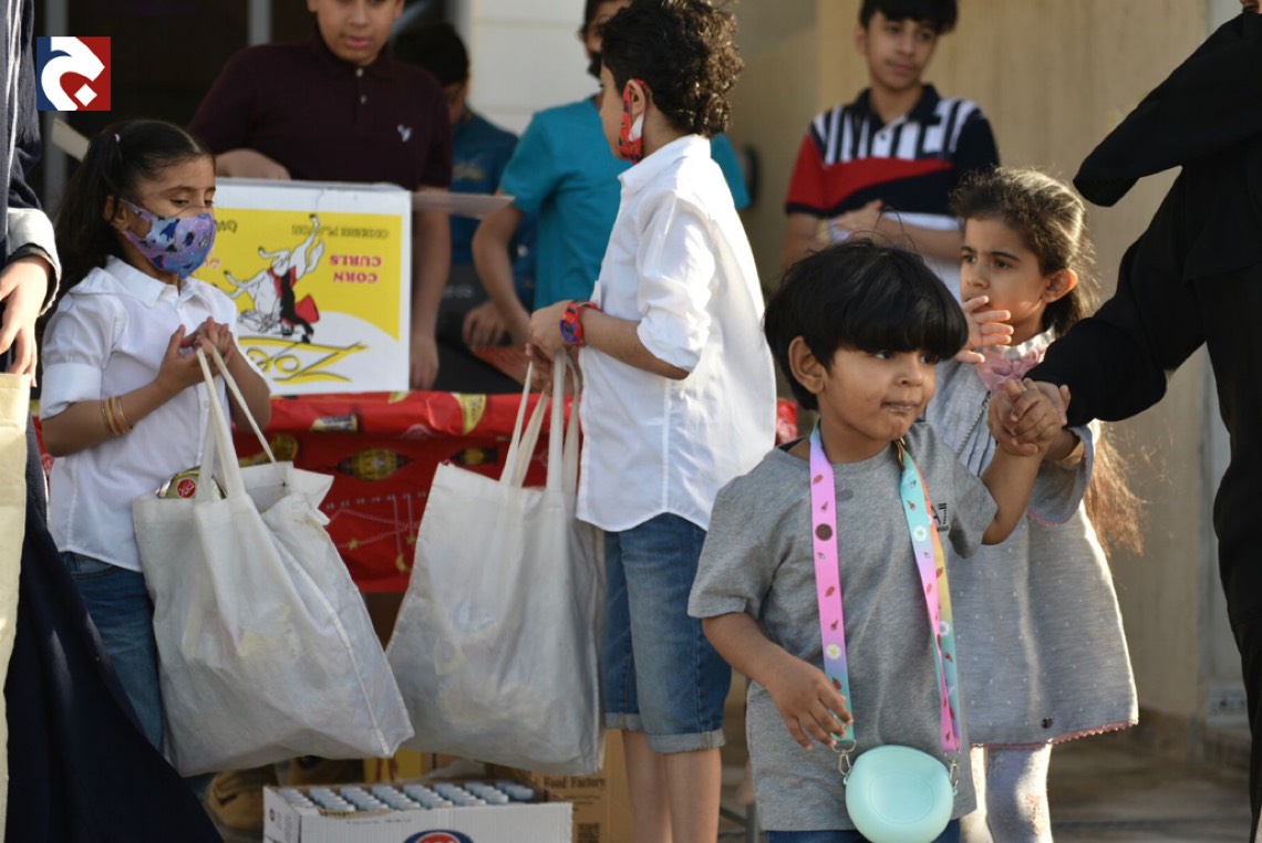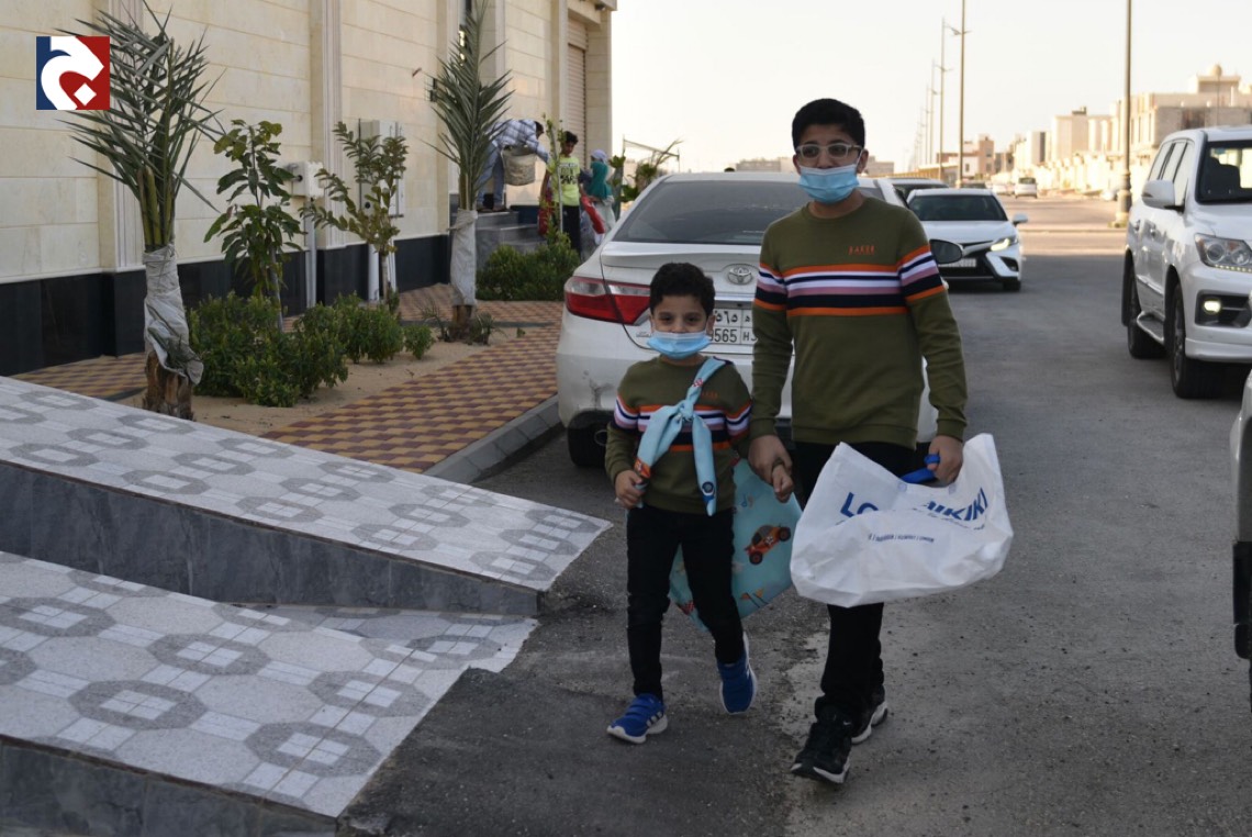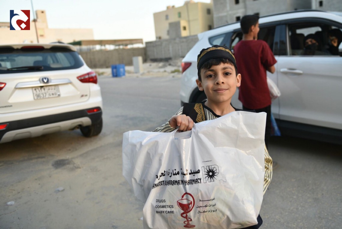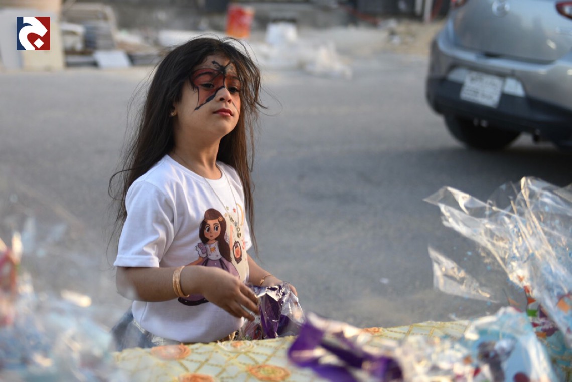 وانتشر الأطفال المتزينين بالثياب الخاصة بالقرقيعان وهم يحملون الأكياس مارين بمنازل الأقارب والجيران لجمع الهدايا والحلويات وهم يرددون بصوت مسموع ”ناصفة حلاوة اعطونا الله يعطيكم“.