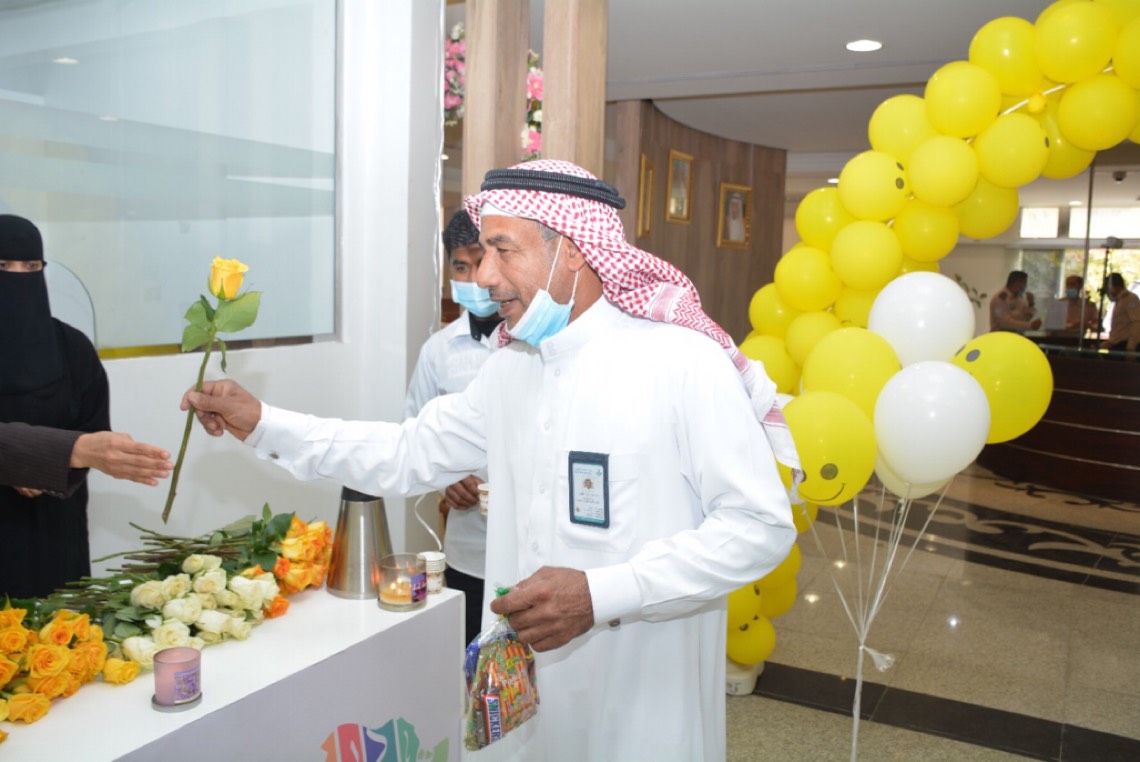 توزيع الهدايا والورود على منسوبي ”بلدية القطيف“ في يوم السعادة