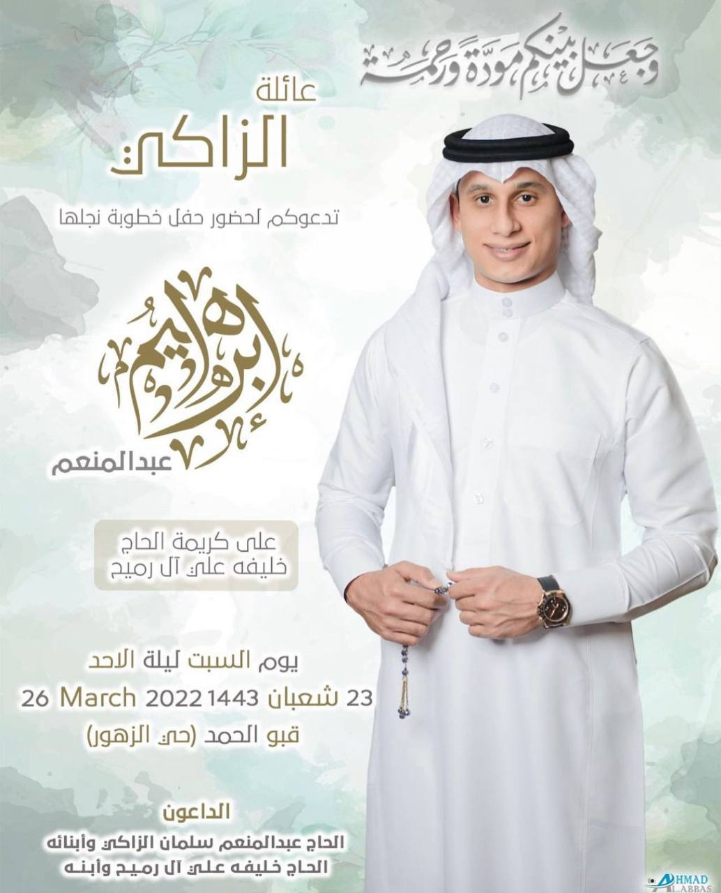 تحتفل عائلة الزاكي وآل رميح في سيهات مساء يوم السبت 23 شعبان بعقد قران الشاب ابراهيم عبد المنعم سلمان الزاكي على كريمة الحاج خليفة علي آل رميح في قبو الحمد «حي الزهور» وسط فرحة الأهل والأصدقاء ومحبي العريسين.