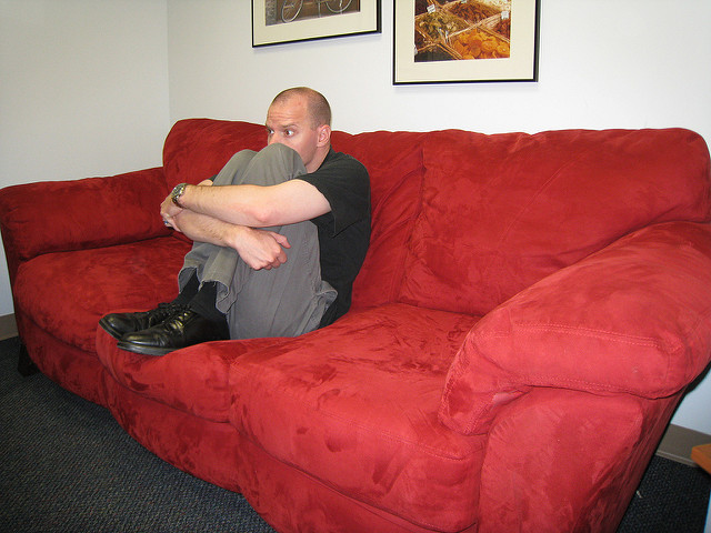 A man sitting in the fetal position on a couch يمكن تحديد فعالية الأشكال المختلفة من العلاج النفسي - على سبيل المثال، العلاج السلوكي المعرفي للاكتئاب - من خلال البحث العلمي.