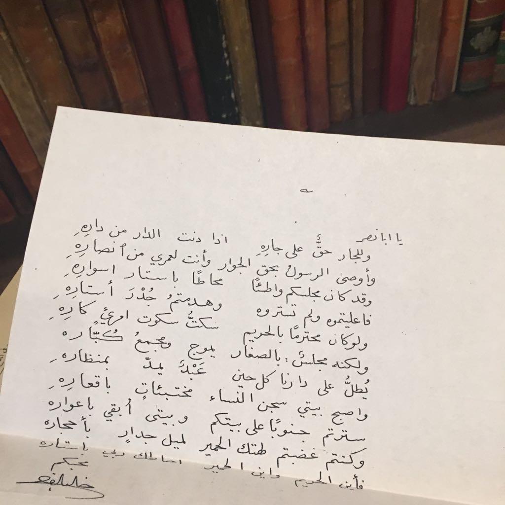 وأوصى الرسول بحقّ الجوارِ** وأنتَ، لعمري، بأنصارِهِ