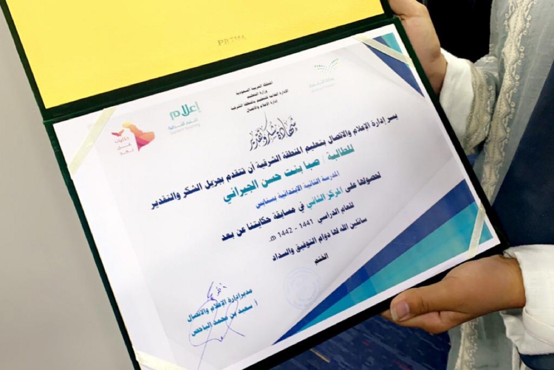 كرمت إدارة التعليم بالمنطقة الشرقية مساء الثلاثاء الفائزين بمسابقة ”حكايتنا عن بعد“.