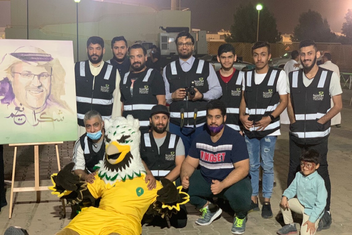 شارك فريق في الخدمة التطوعي فعاليات نادي الخليج بلوحة تعبيرية تحت عنوان ”شكرًا نعيم“ وفاءً للفقيد نعيم المكحل.