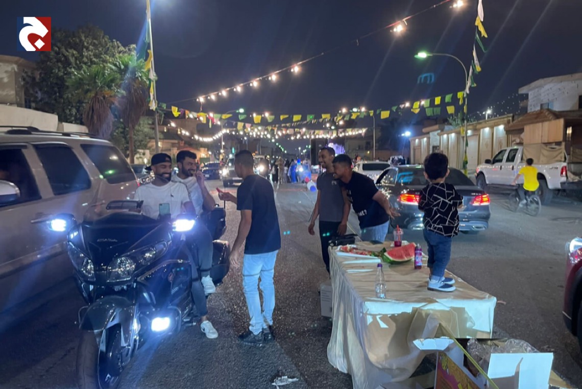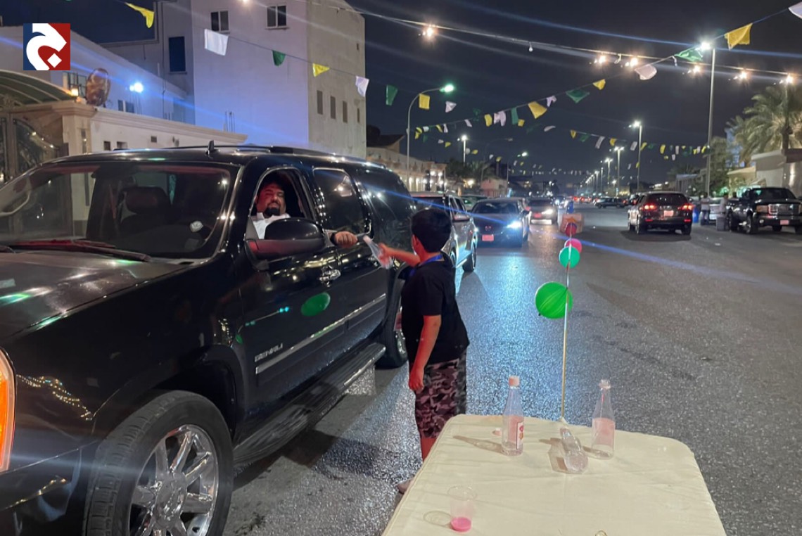 في المساجد والحسينيات، بينما يتجول الأطفال بين المنازل لجمع الحلويات والألعاب وأنواع من التوزيعات.