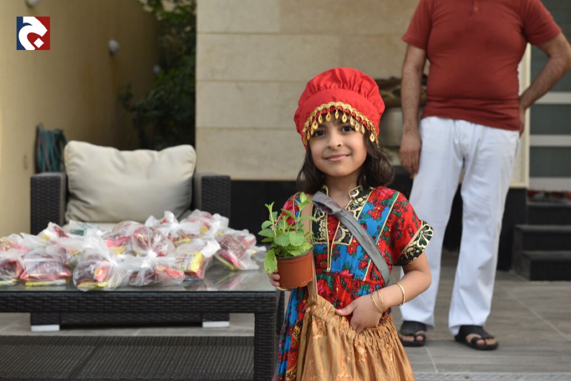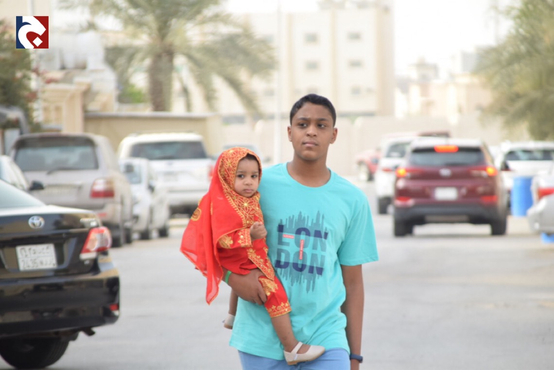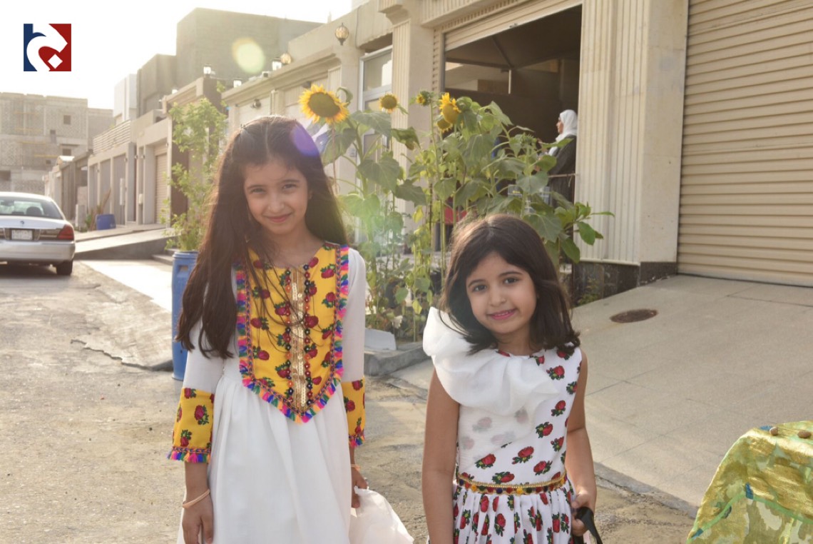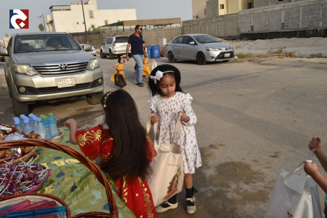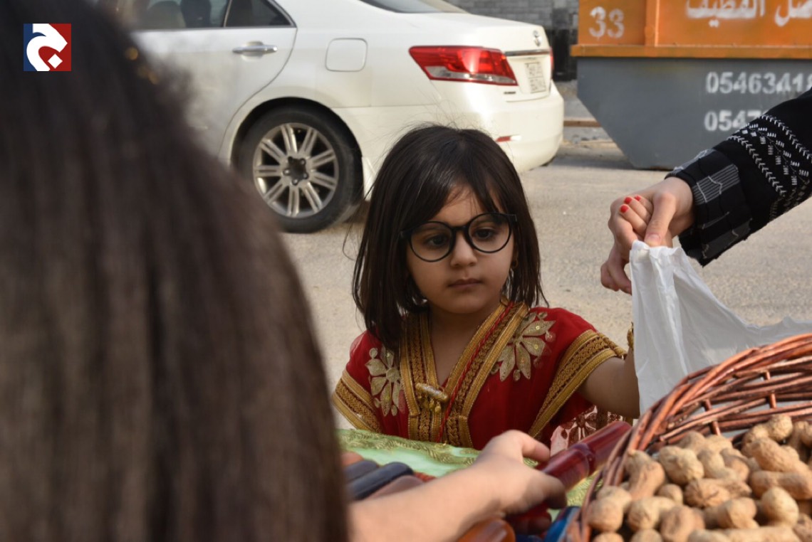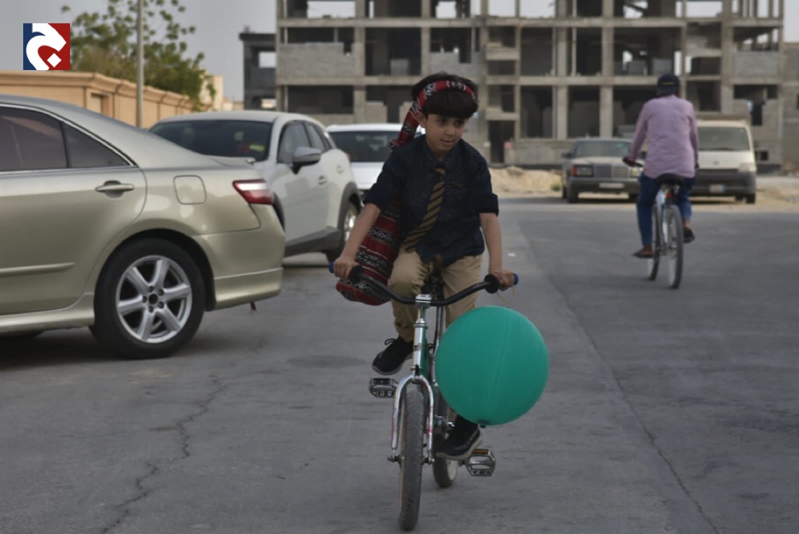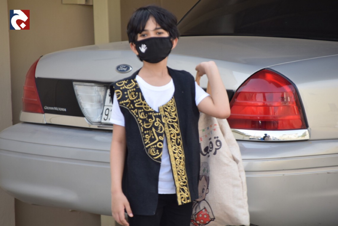 وانتشر الأطفال المتزينين بالثياب الخاصة بالقرقيعان وهم يحملون الأكياس مارين بمنازل الأقارب والجيران لجمع الهدايا والحلويات وهم يرددون بصوت مسموع ”ناصفة حلاوة أعطونا الله يعطيكم“.