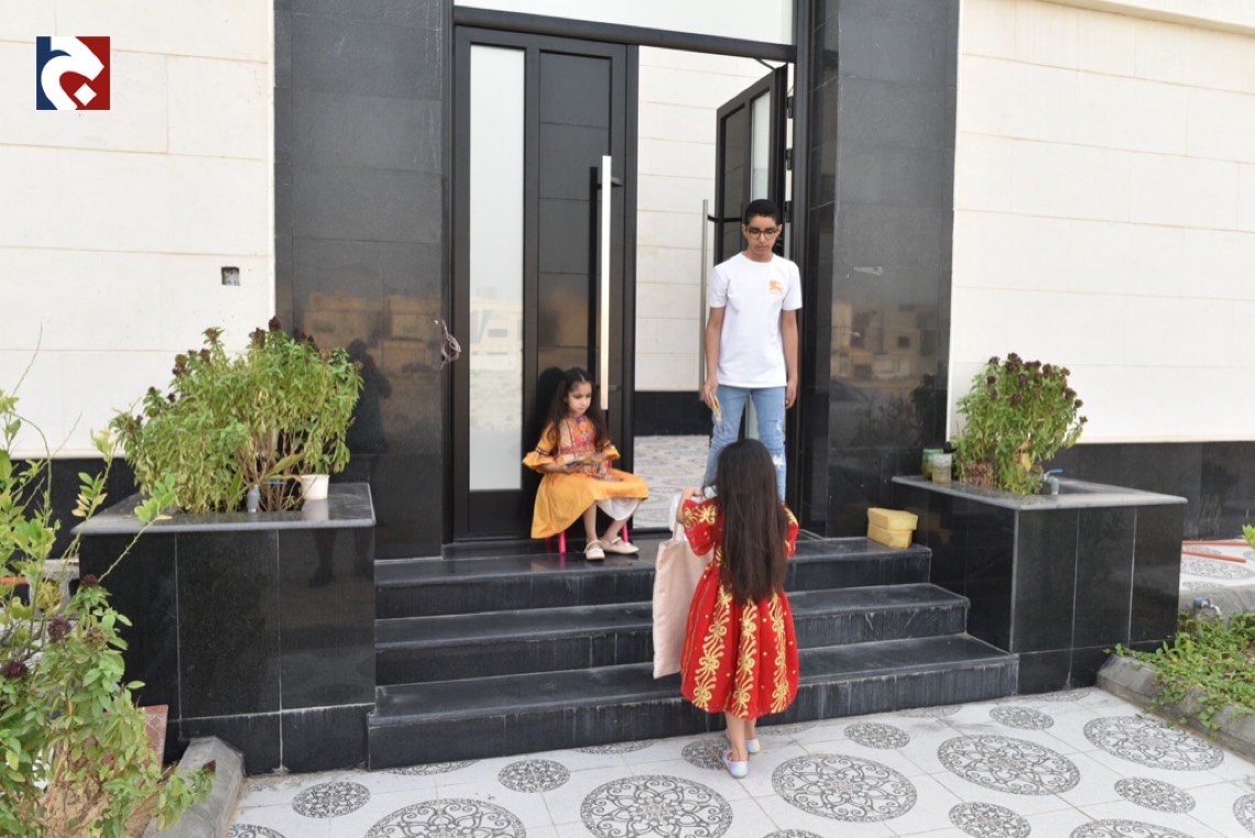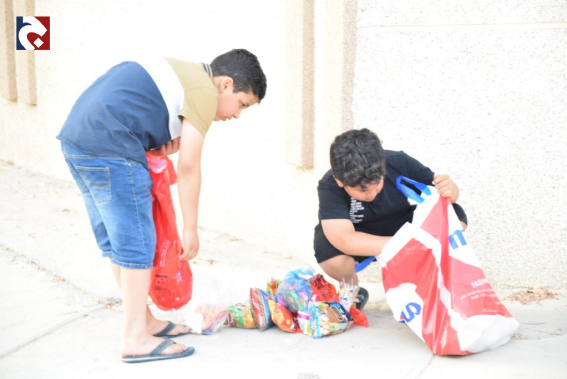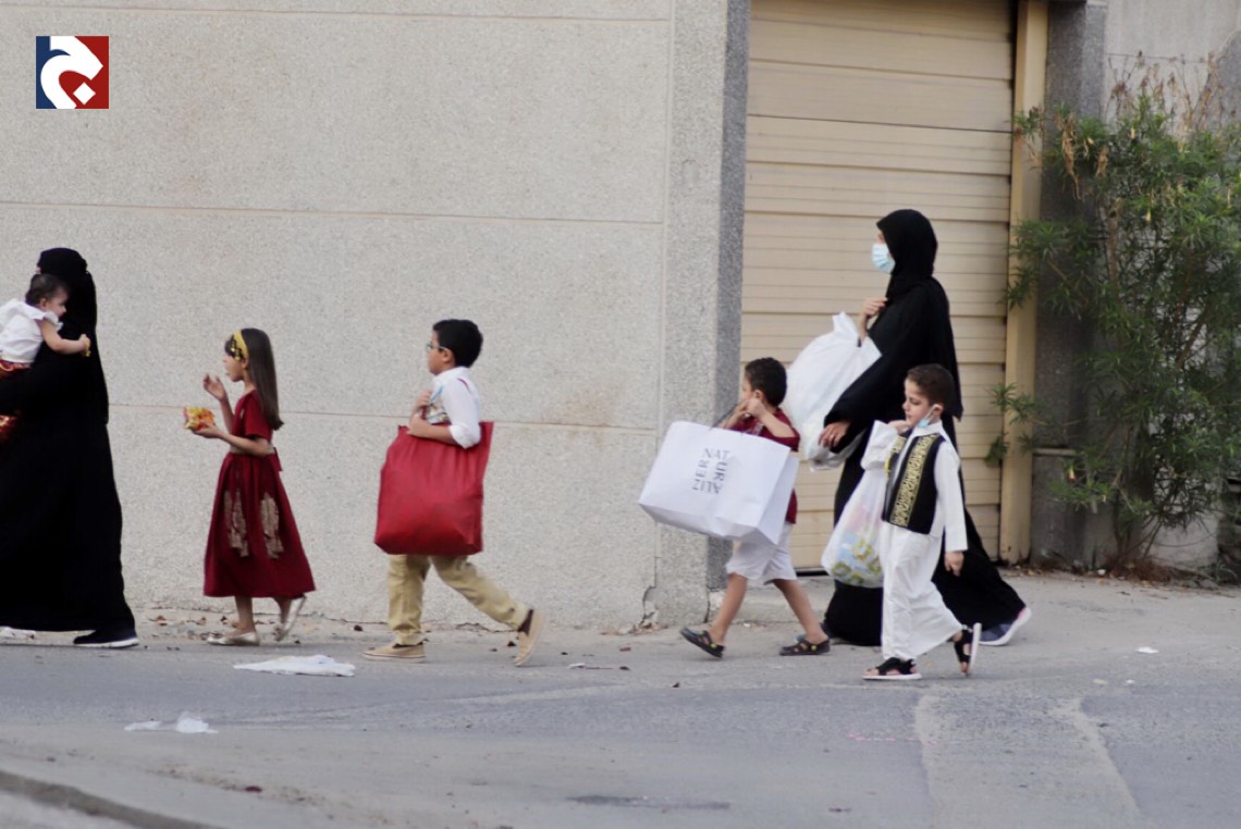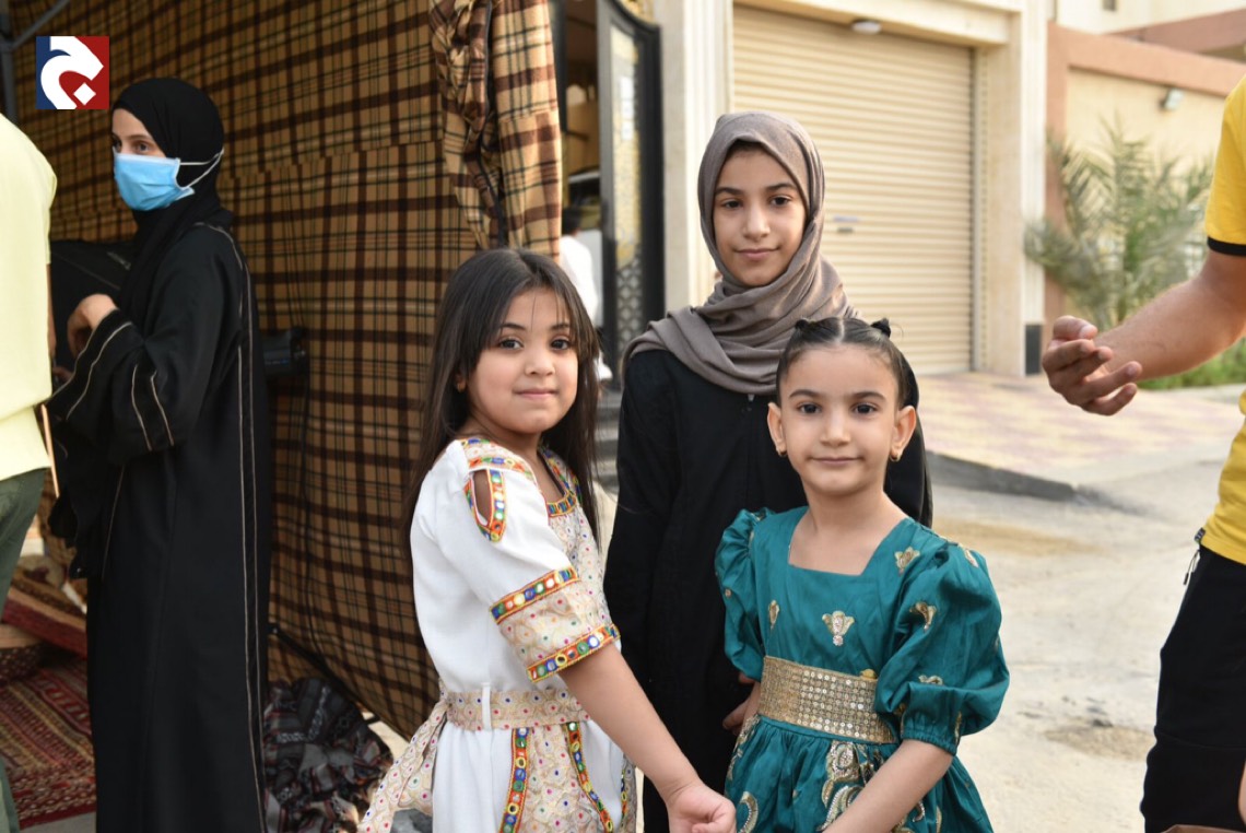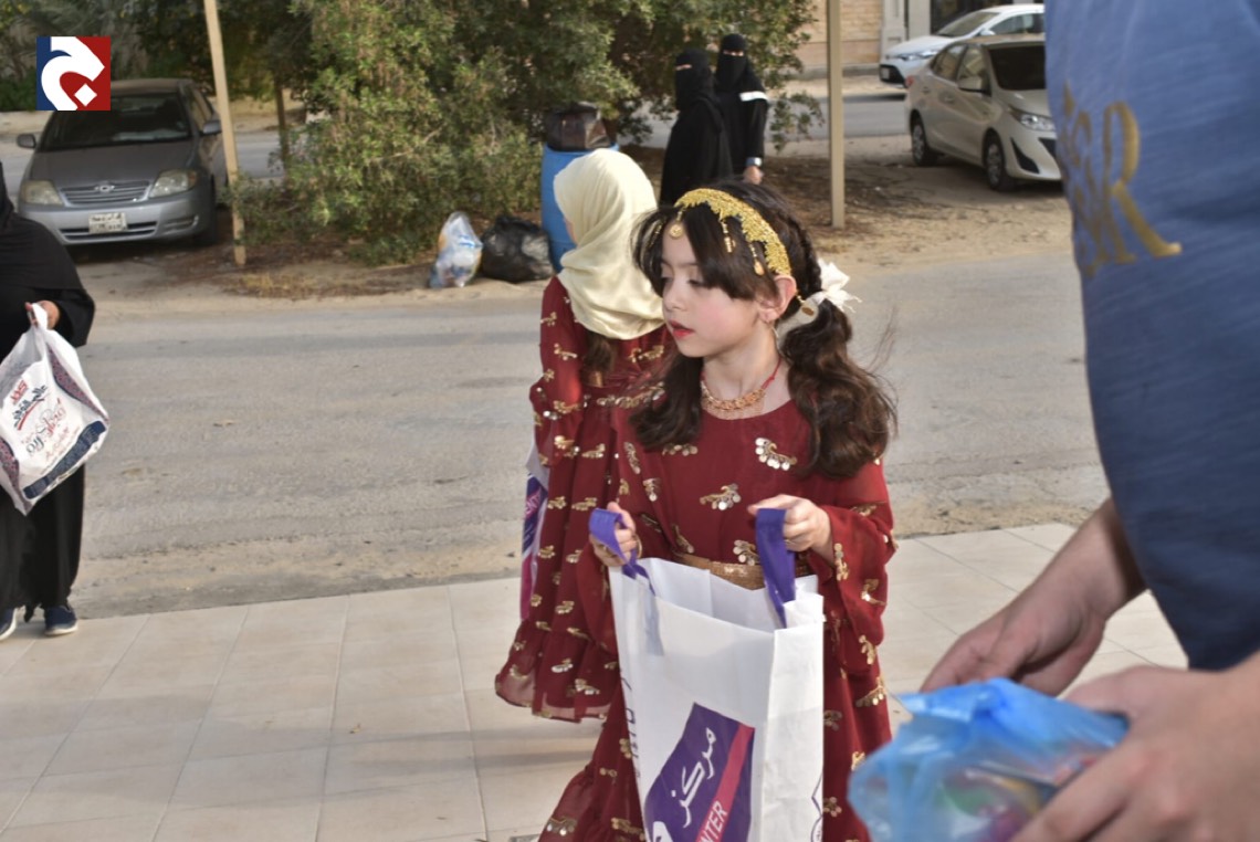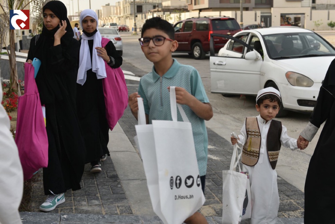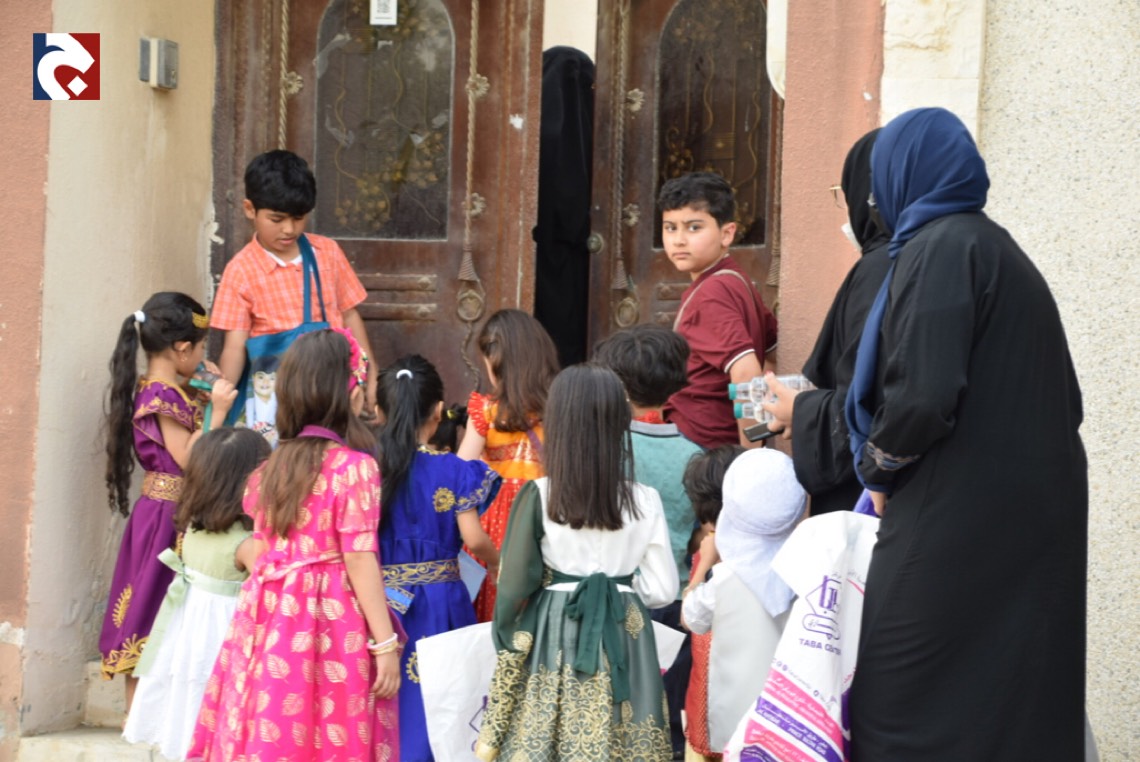 وانتشر الأطفال المتزينين بالثياب الخاصة بالقرقيعان وهم يحملون الأكياس مارين بمنازل الأقارب والجيران لجمع الهدايا والحلويات وهم يرددون بصوت مسموع ”ناصفة حلاوة أعطونا الله يعطيكم“.