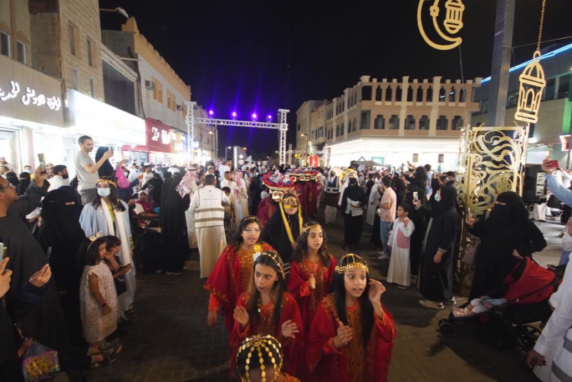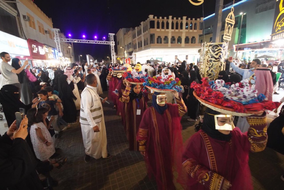 وشهد المهرجان خلال الإجازة الأسبوعية عدد من البرامج والفعاليات التي تواكبت مع مناسبة ”القرقيعان“ للاحتفاء بمرور نصف شهر رمضان المبارك، حيث جال الأطفال وأسرهم مع الفرق الفلكلورية بين أروقة وأزقة شارع الحب، منشدين الأهازيج وهم يحملون الطبول والدفوف مرتدين الأزياء الشعبية الجميلة بمختلف الفئات العمرية من الأطفال والنساء والرجال، فيما وزع المنظمون برفقة الآباء والأمهات الحلوى على أطفالهم والزوار في أجواء رمضانية جميلة.