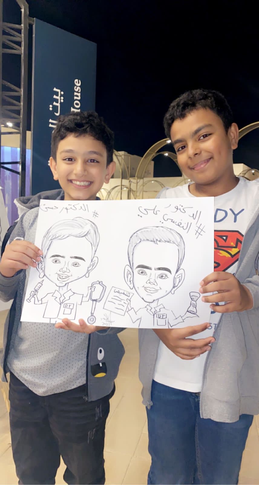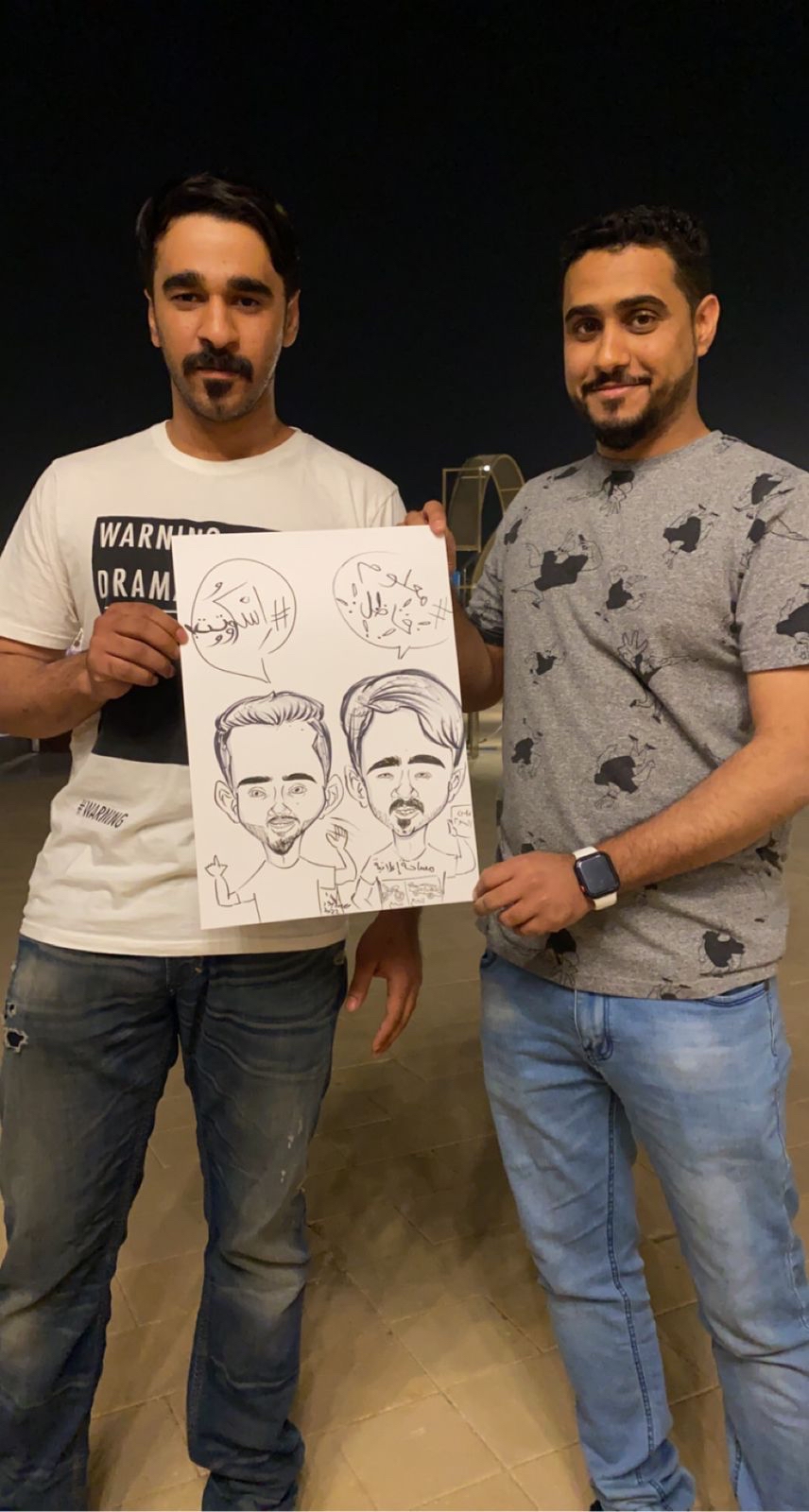 رسم الفنان الكاريكاتيري مصطفى الأسود، أكثر من 100 زائر في ملتقى الرامس ببلدة العوامية بمحافظة القطيف.