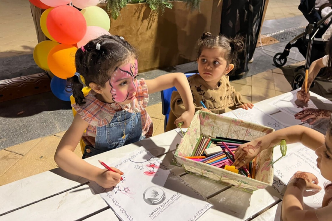 وقال: نشارك المجتمع باستشارات نفسية واجتماعية ومهنية تقدم لهم بالمجان، وحتى الأطفال نشاركهم من خلال الرسم والتلوين لتعزيز مفهوم الوطنية والانتماء من خلال تلوين المعالم الوطنية.
