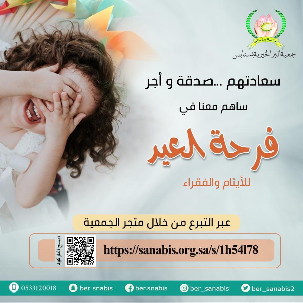 وأوضح رئيس الجمعية ابراهيم الزوري، أن الحملة تهدف إلى توفير كسوة العيد لأبناء وبنات الجمعية، لدعم احتياجاتهم خلال عيد الفطر المبارك، متطلعاً لإسهام جميع شرائح المجتمع عبر التبرع عن طريق المتجر الإلكتروني ”https://sanabis.org.sa/s/1h54l78“ أو الإيداع المباشر أو التحويل على أحد حسابات الجمعية المعتمدة.