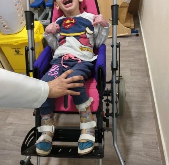 وتسلم الأجهزة للشخص المستحق حسب حالته الحركية ومقاساته الجسدية بعد الفحص والتقييم الكامل للحالة.