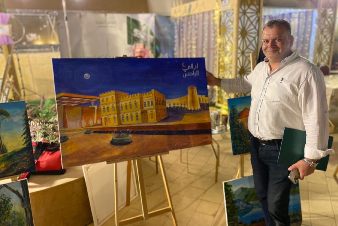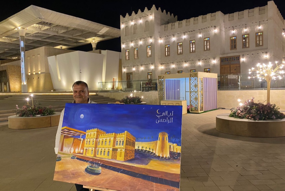 تشكيلي لبناني يبهر زوار «ليالي الرامس» برسم ”بيت العمدة“