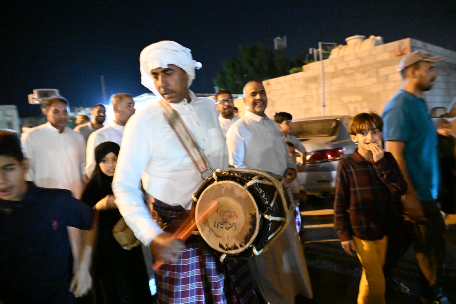وشارك الأطفال مع المسحر في تظاهرة احتفالية ليالي الوداع وهم يرددون في فرح وسعادة ما يصدح به المسحر من أهازيج وشيلات.