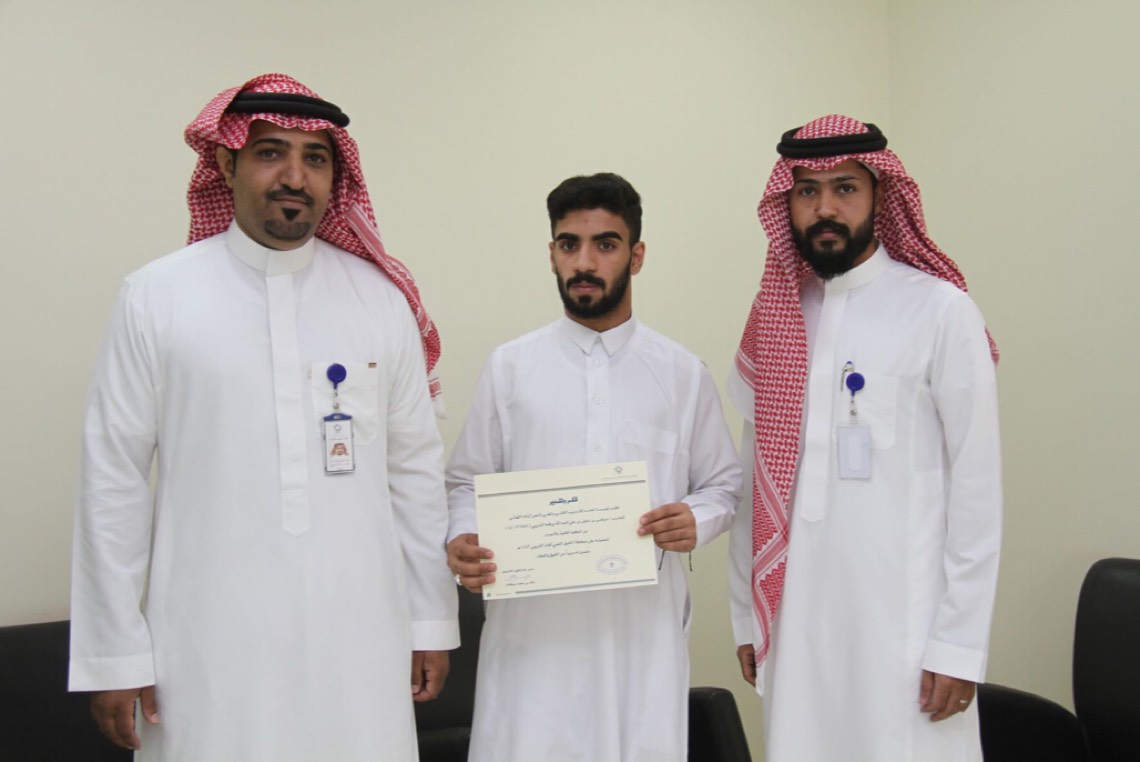 ومن قسم تقنية الحاسب الآلي مصعب الصقر، حسن القميش، قاسم البن احمد، عبدالله السلطان، راكان الفاضلي، يوسف الفرج، فواز الدخيل، ناصر الناصر، حيدر الداغر، محمد السعيد، علي جاسم الحسن، من قسم صيانة الآلات المتدرب: فهد الهلال.