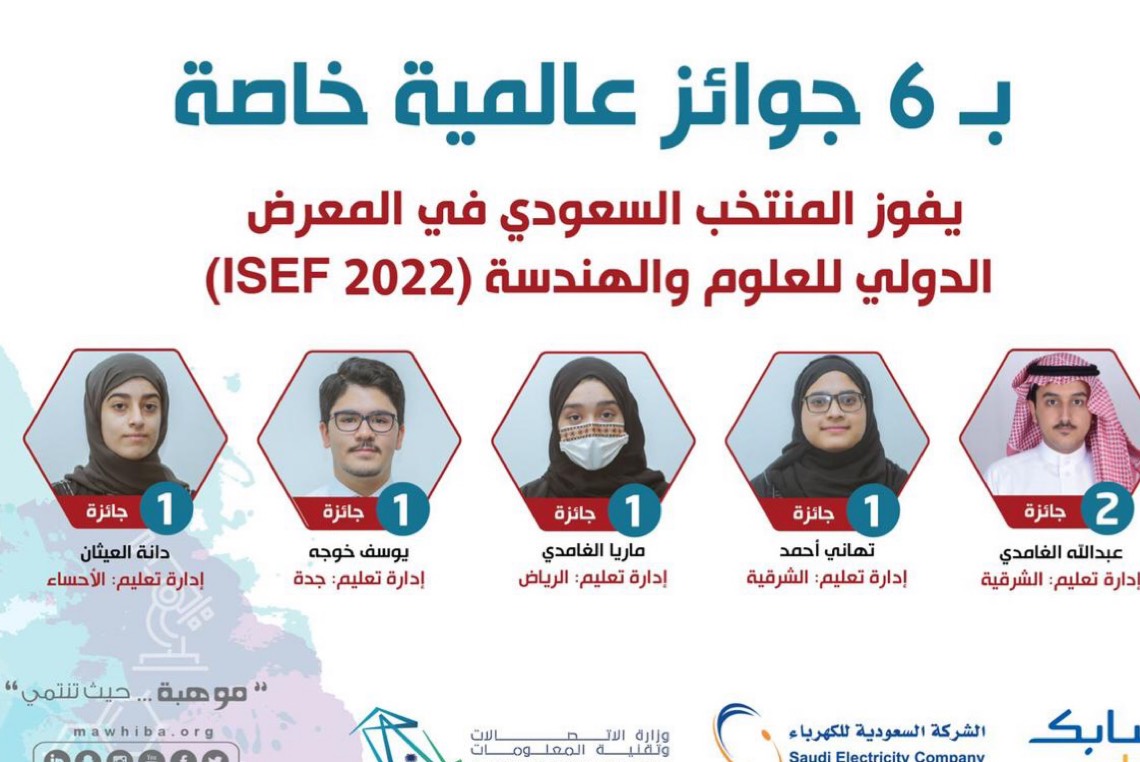 حققت المملكة، ممثلة في مؤسسة الملك عبدالعزيز ورجاله للموهبة والإبداع ”موهبة“، ووزارة التعليم، وللعام السادس عشر على التوالي، 6 جوائز خاصة خلال مشاركتها في معرض ”ريجينيرون الدولي للعلوم والهندسة“ آيسف ”2022“ الذي أقيم في أتلانتا بولاية جورجيا الأمريكية.
