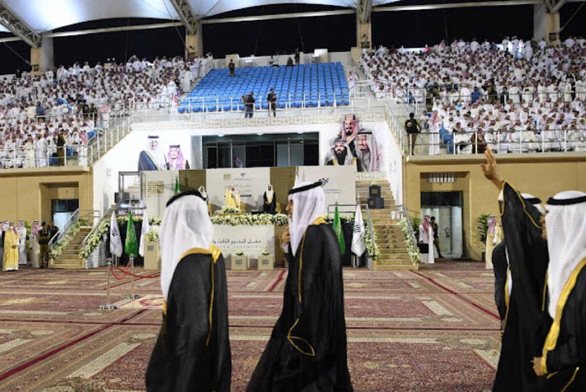 حضر الحفل رئيس الجامعة الأستاذ الدكتور عبدالله الربيش ووكلاء الجامعة وعمداء الكليات وأعضاء هيئة التدريس وضيوف الجامعة وأولياء الأمور من الرجال والسيدات في الاستاد الرياضي بالمدينة الجامعية.