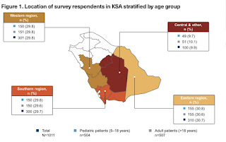 تم جمع البيانات من 11 مدينة سعودية، 90٪ من المستجيبين كانوا من المناطق الشرقية والجنوبية الغربية من المملكة العربية السعودية حيث انتشار فقر الدم المنجلي يعد الأعلى بين مناطق المملكة. كان عبء المرض معتبرًا بغض النظر عن المنطقة؛ صُنفت جودة الحياة QoL على أنها ضعيفة / مقبولة من قبل 27٪ من الراشدين المرضى و38٪ من الأطفال المرضى «انظر الشكل أدناه».