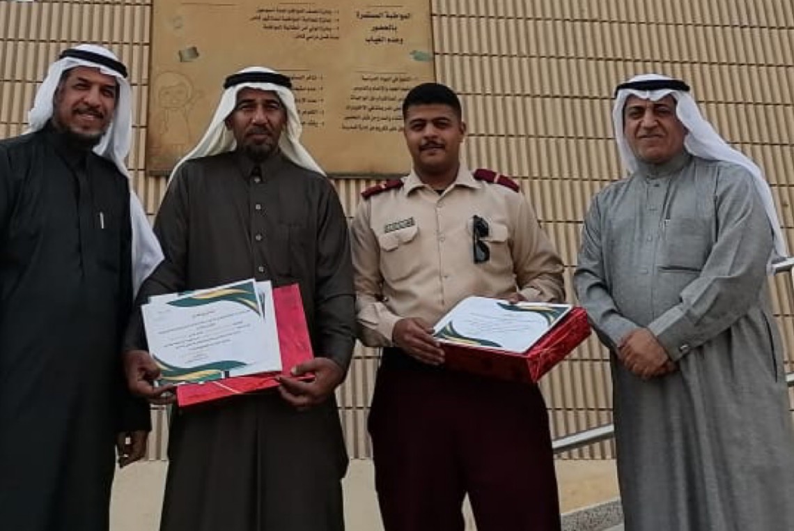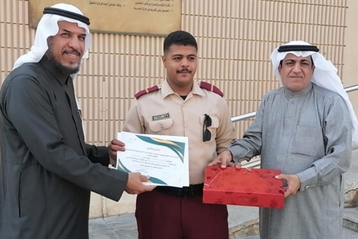 كرم ولي أمر الطالبة ”تبارك الغزال“، حارس ورجل أمن مدرسة ”الأربعون الابتدائية“ بحي الملك فهد بالهفوف ”الداخل المحدود“، الحارس سامي الحباش، وكذلك رجل أمن المدرسة إبراهيم الحسن، وذلك بحضور مدير الأمن والسلامة المدرسية بتعليم الأحساء محمد العامر.