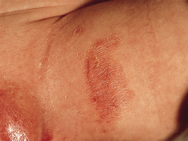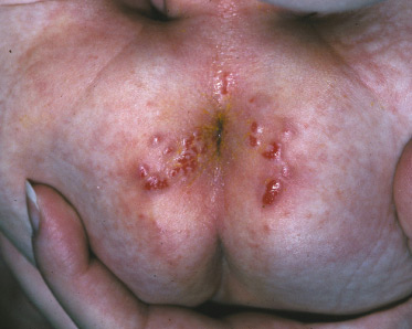 التهاب الجلد الجاكيت أو التهاب الجلد الحفاظي التآكلي: Jacquet dermatitis or erosive napkin dermatitis.
