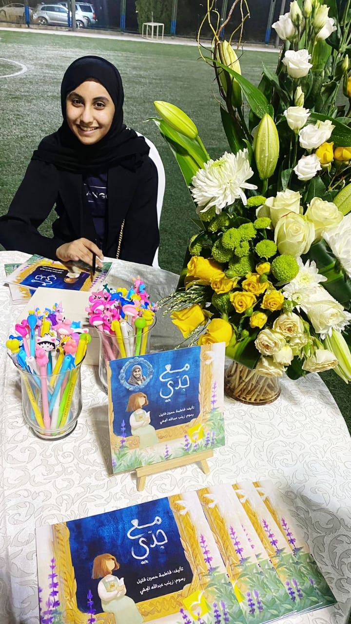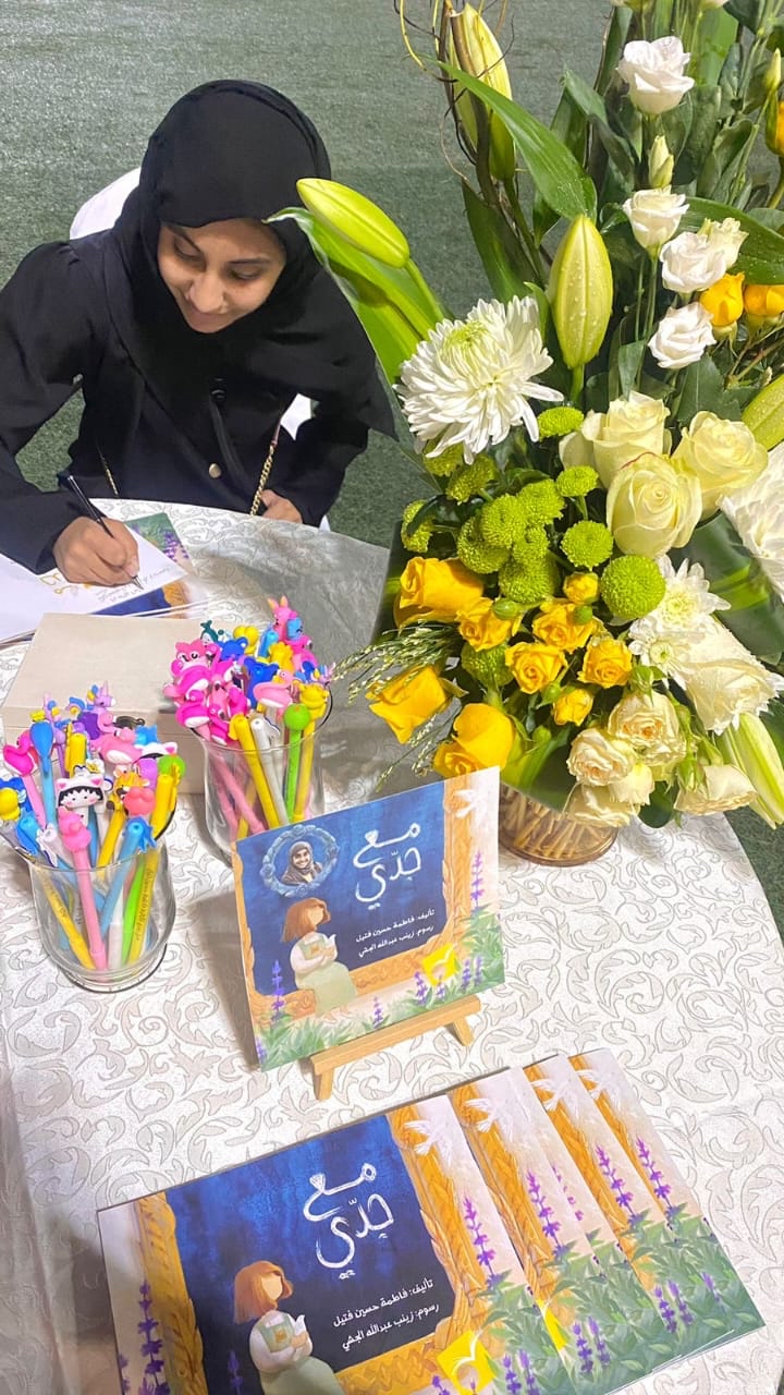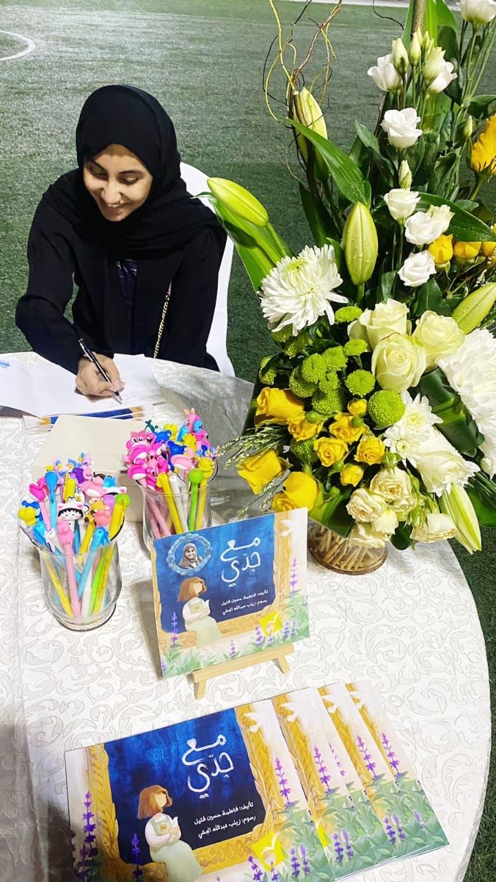 يشار إلى أن الكتاب من تأليف فاطمة آل فتيل ذات 12 عامًا، ورسوم زينب الجشي.