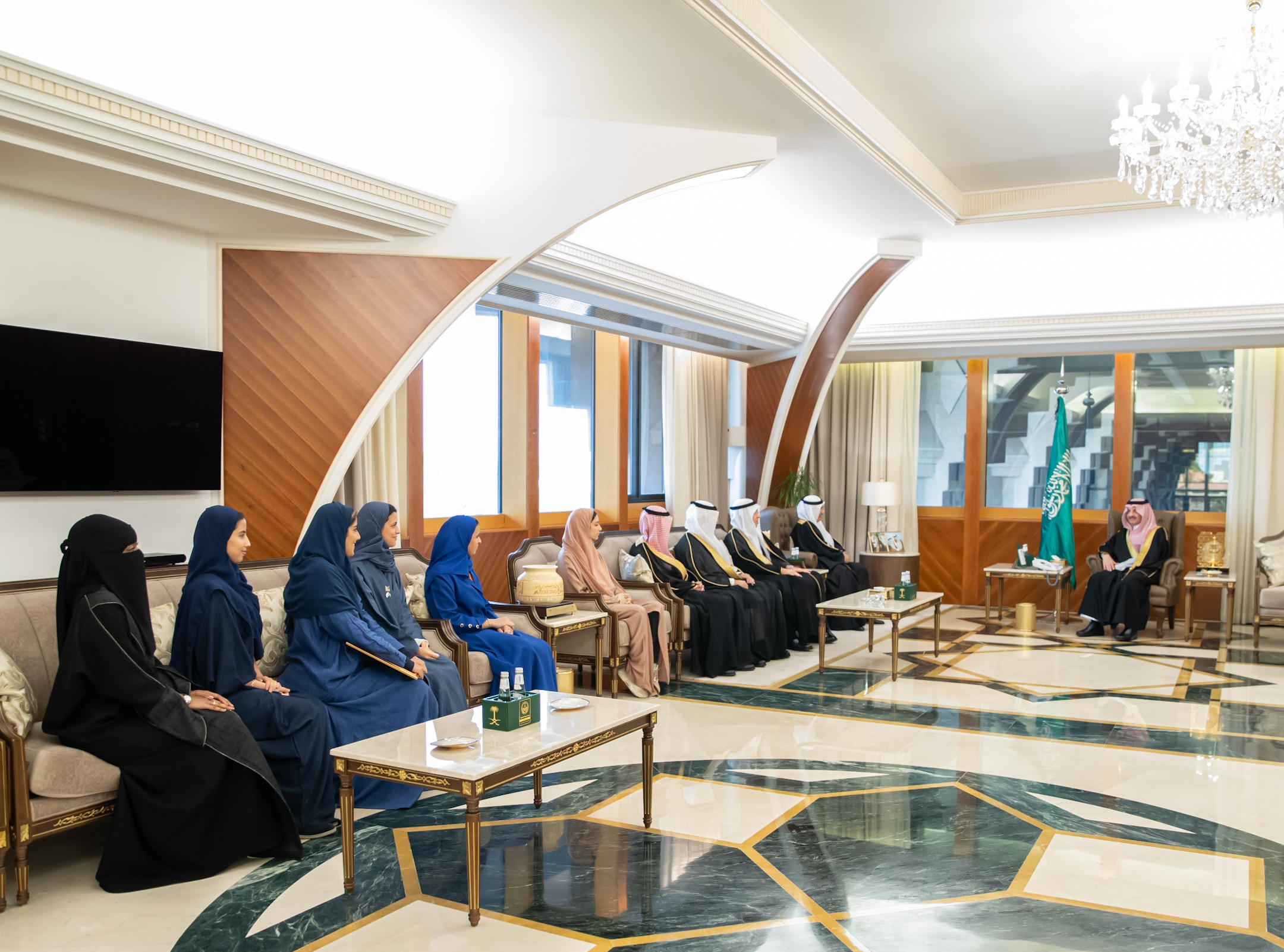 جاء ذلك خلال استقباله، في مكتبه بديوان الإمارة، أمس، رئيس مجلس الأمناء بجامعة اليمامة خالد الخضير وعدد من قيادات الجامعة، وطالبات الجامعة بالخبر بمناسبة حصولهم على المركز الثاني في الجائزتين.