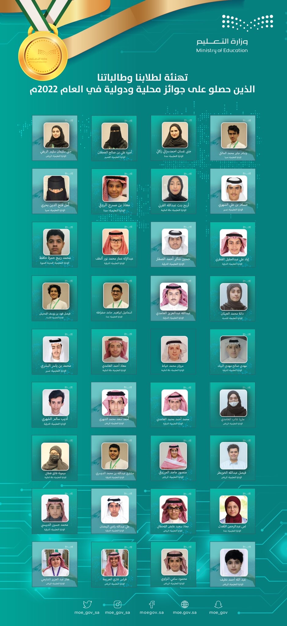 ونشرت المتحدثة باسم التعليم العام ابتسام الشهري، صور الطلاب الذين رفعوا اسم المملكة عالياً وعددهم 73 طالبا وطالبة، ليكتشف أن المنطقة الشرقية حصلت على نسبة 25% من أسماء الطلاب المكرمين وعددهم 18 طالبا.