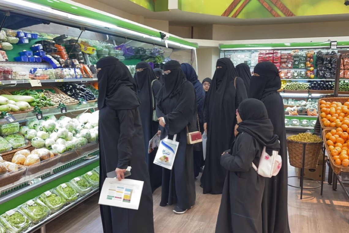 واصطحب المستشفى عددًا من المتدربات، في جولة بأحد المتاجر الغذائية، لتعريفهن بكيفية اختيار الوجبات الصحية، وقراءة الوصفات الغذائية على المنتجات المعلبة، ومعرفة الملائم منها.