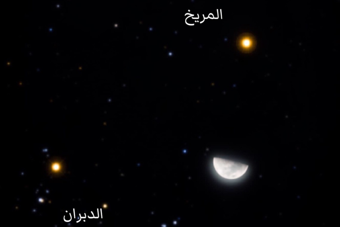 بالعين المجردة.. شاهد اقتران القمر مع المريخ والدبران بعد منتصف الليلة