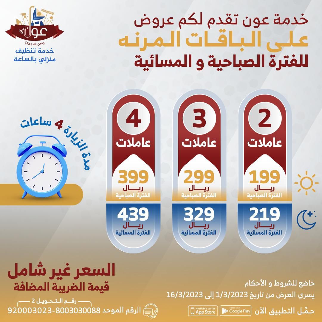 ”خدمة عون“ تقدم لكم عروض على الباقات المرنة للفترة الصباحية والمسائية