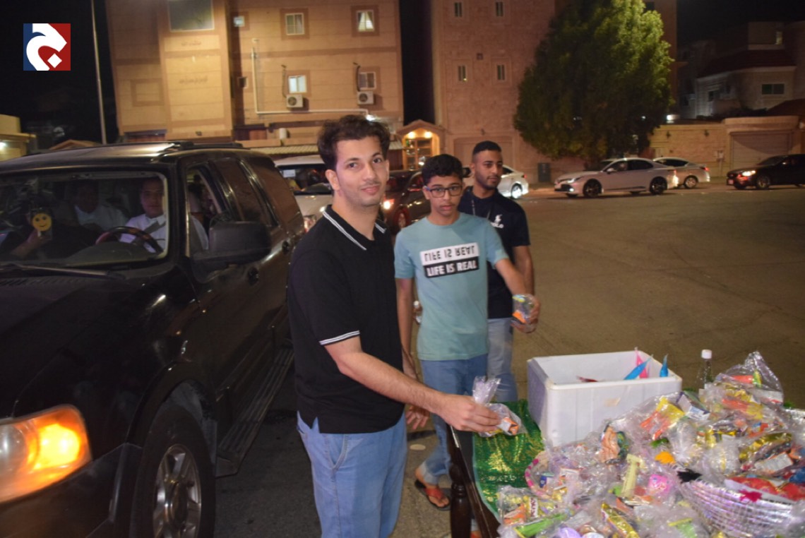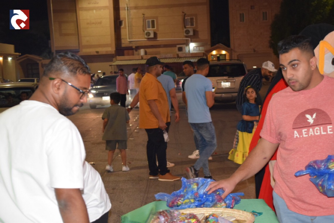 وردد الاطفال حاملين أكياس مزكرشة، وحلويات ملونة، هتافات وأهازيج ب «ناصفة حلاوة.. عطونا الله يعطيكم.. سلم الله أبو عيالكم». فيما حرصت الأمهات على توزيع الحلوى عند أبواب منازلهن.