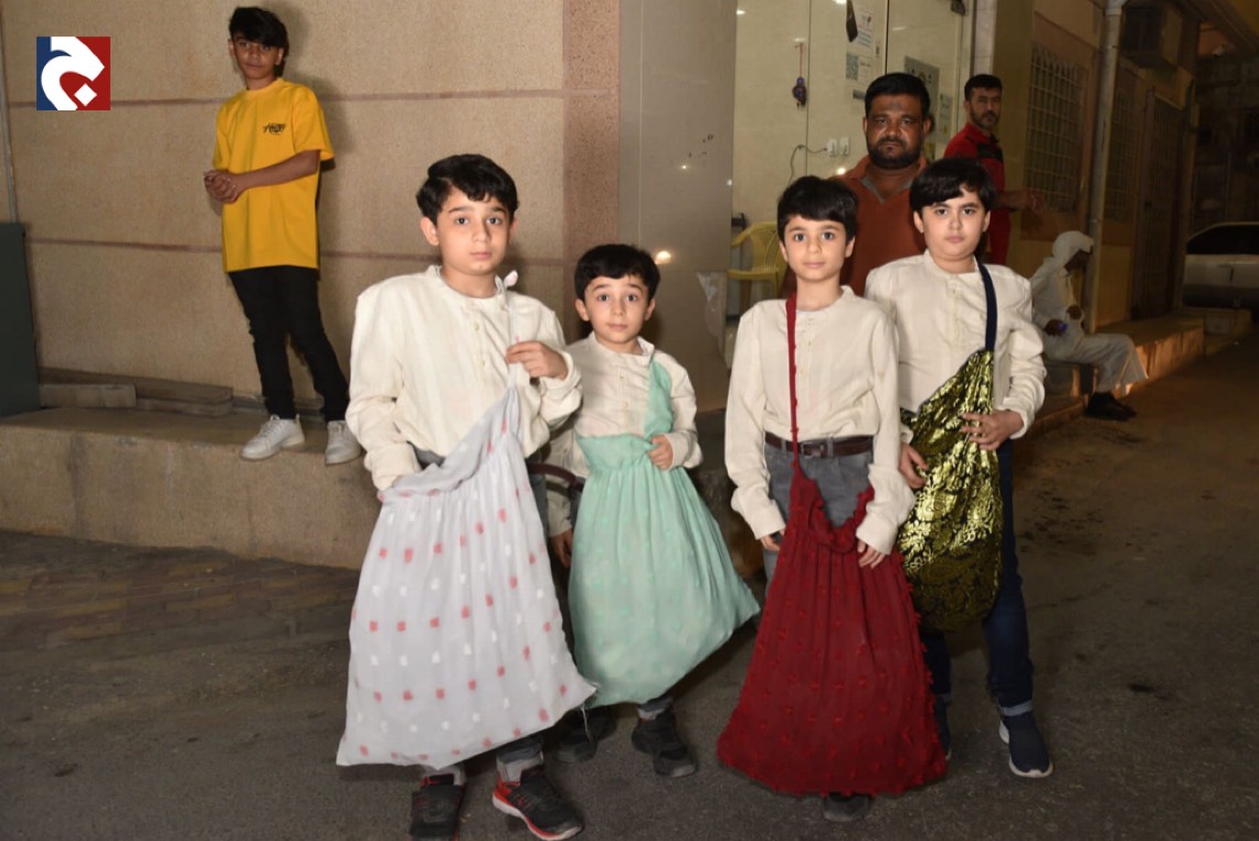 وخرج الآلاف الأطفال فارتدى بعض الأولاد الملابس التراثية كالزي الخليجي، في الوقت الذي لبست فيه البنات والفتيات الجلابيات والبخانق في عرض شعبي للأزياء القديمة، وهم يجوبون الشوارع ويطرقون المنازل.