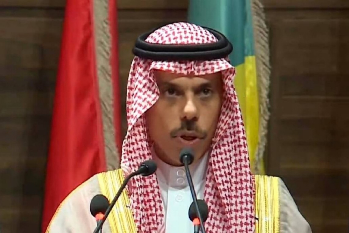 وخلال كلمته، قال الأمير فيصل بن فرحان: تُعرب المملكة عن تضامنها وصادق مواساتها للأشقاء في سورية وتركيا إثر ما خلفته كارثة الزلزال من خسائر بشرية ومادية، فقد سخّرت السعودية الجهود للتخفيف من تبعات هذا المصاب عبر إرسال المساعدات العاجلة، ونظمت حملة شعبية لصالح المتضررين، كما تؤكد المملكة موقفها الداعم للإسراع في إيجاد حلّ عادل وشامل للقضية الفلسطينية، وفق قرارات الشرعية الدولية ومبادرة السلام العربية، وإقامة دولة فلسطين مستقلة على حدود عام 1967، وعاصمتها القدس الشرقية.