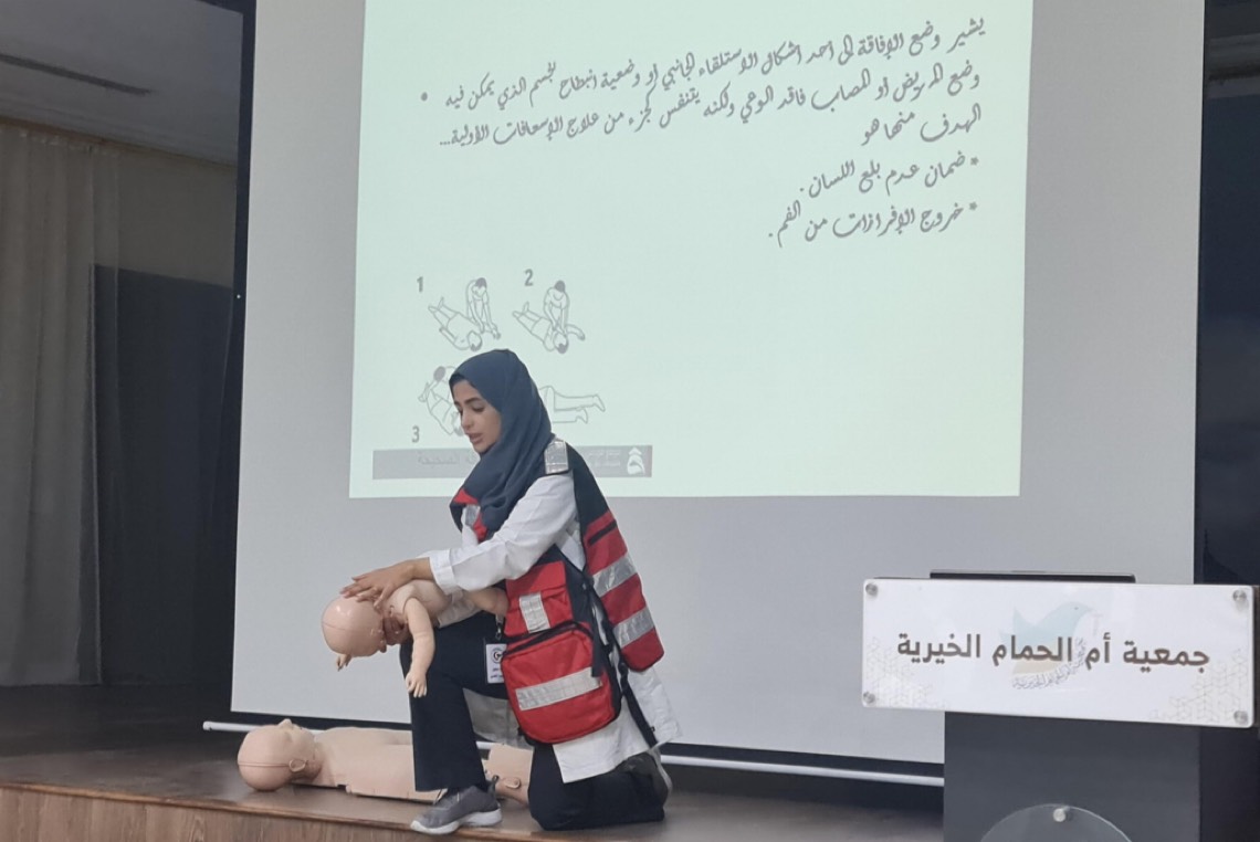 وشهدت ورشة عمل تضمنت مواضيع متنوعة منها التعريف بالإسعافات الأولية، وتقييم موقع الحدث، وسلسلة النجاة، واستخدام الحواجز، والتعامل مع مهارات النزيف الشديد والاختناق والإنعاش القلبي الرئوي وكذلك الحروق ودرجاتها ووضعية الإفاقة.