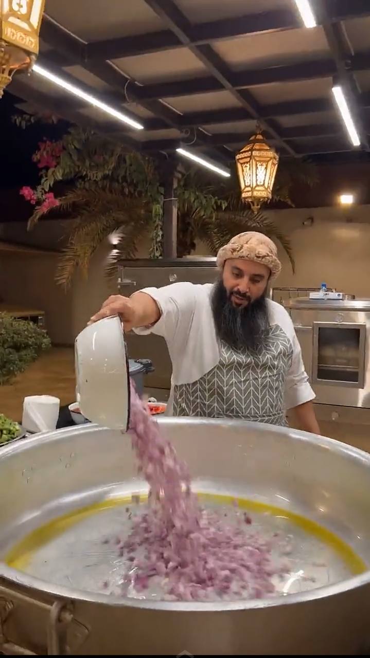 بادر مجموعة من الشباب بإعداد أكبر طبق ”مقلوبة بامية باللحم“ في العاصمة الرياض كوجبة سحور لأول ليالي شهر رمضان.