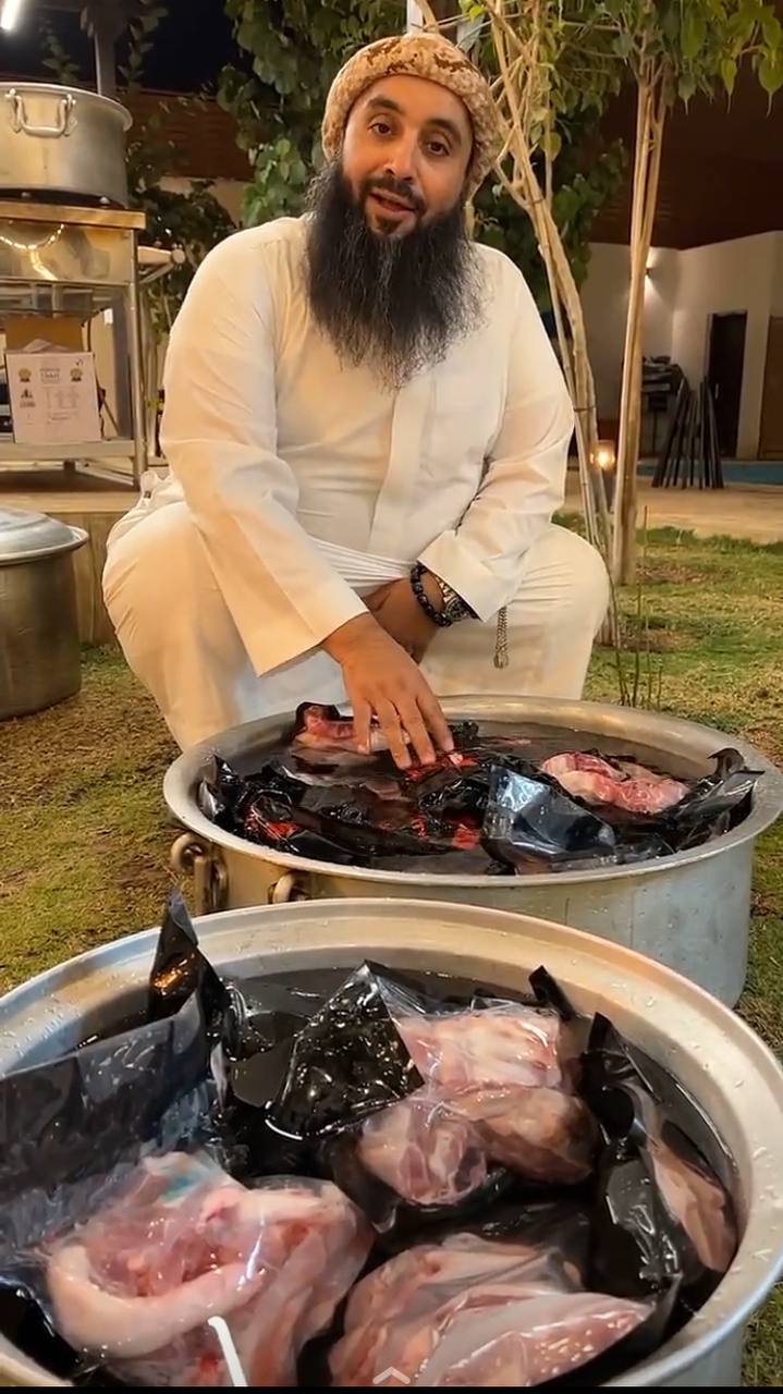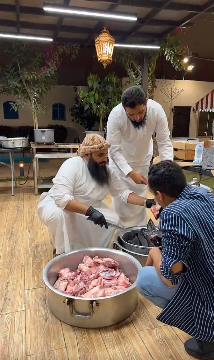 وبادر مجموعة من أقربائه في مساعدته لصنع قاعدة حديدية تتمكن من حمل القدر قبل قلبه بمكوناته في الطبق، والذي وصل وزنه إلى قرابة 250 كيلو جرام.