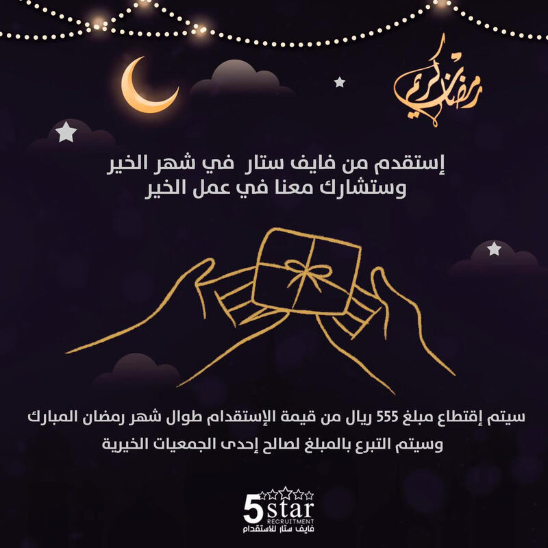 استقدم من فايف ستار في شهر الخير .. وستشارك معنا في عمل الخير