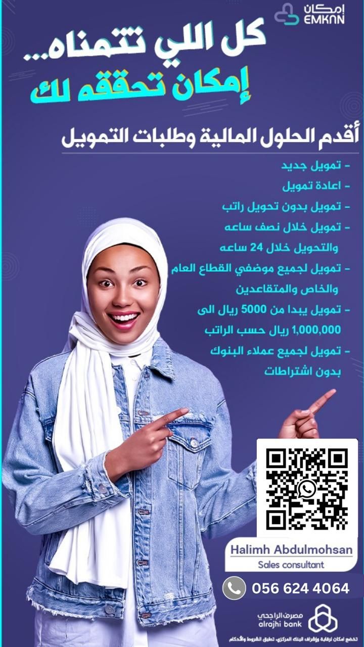 للاستفسار التواصل مع حليمة عبد المحسن استشارية تمويل شخصي