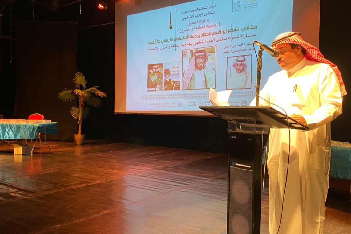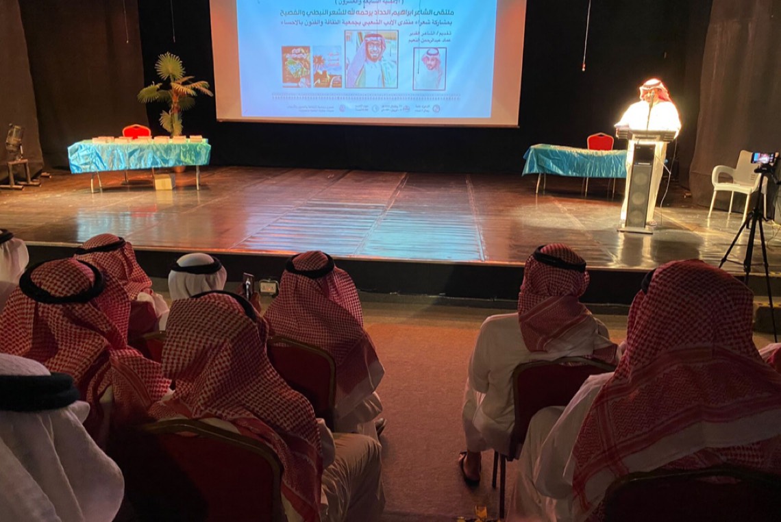 شارك 20 شاعرًا في الأمسية الشعرية الاستثنائية، التي أقامها المنتدى الأدب الشعبى بالأحساء، التابع لجمعية الثقافة والفنون، لتجسيد ذكرى الشاعر والباحث إبراهيم الحداد.