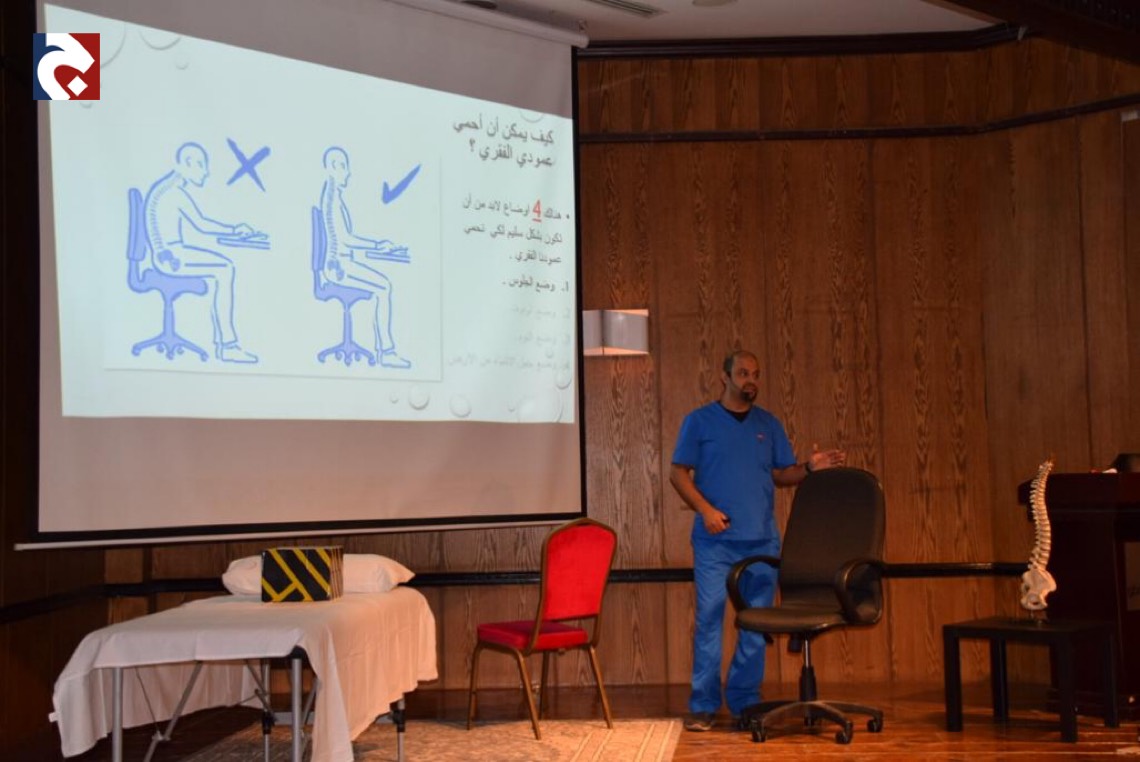 وقدم تعريفًا عن العلاج الطبيعي، إلى جانب طرح حقائق وإحصائيات عن مشاكل العمود الفقري ومشاكل الظهر والرقبة.