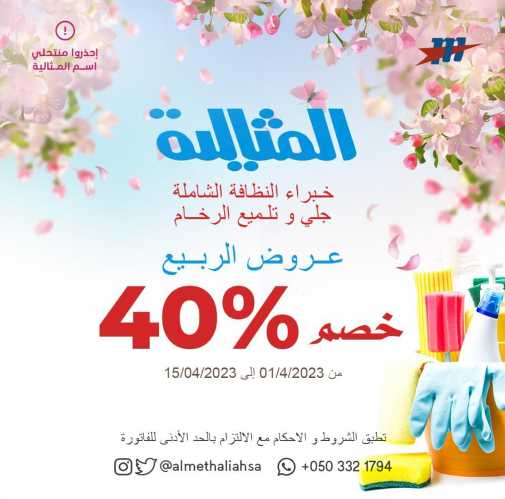 عروض الربيع.. خصم 40% على كافة خدمات النظافة في شركة المثالية