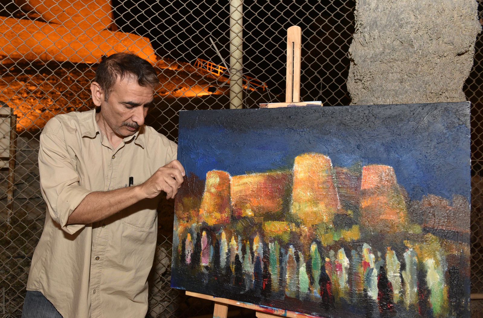 وأخيرًا جاءت اللوحة الرابعة للفنان منير الحجي من نصيب التشكيلي زمان جاسم.